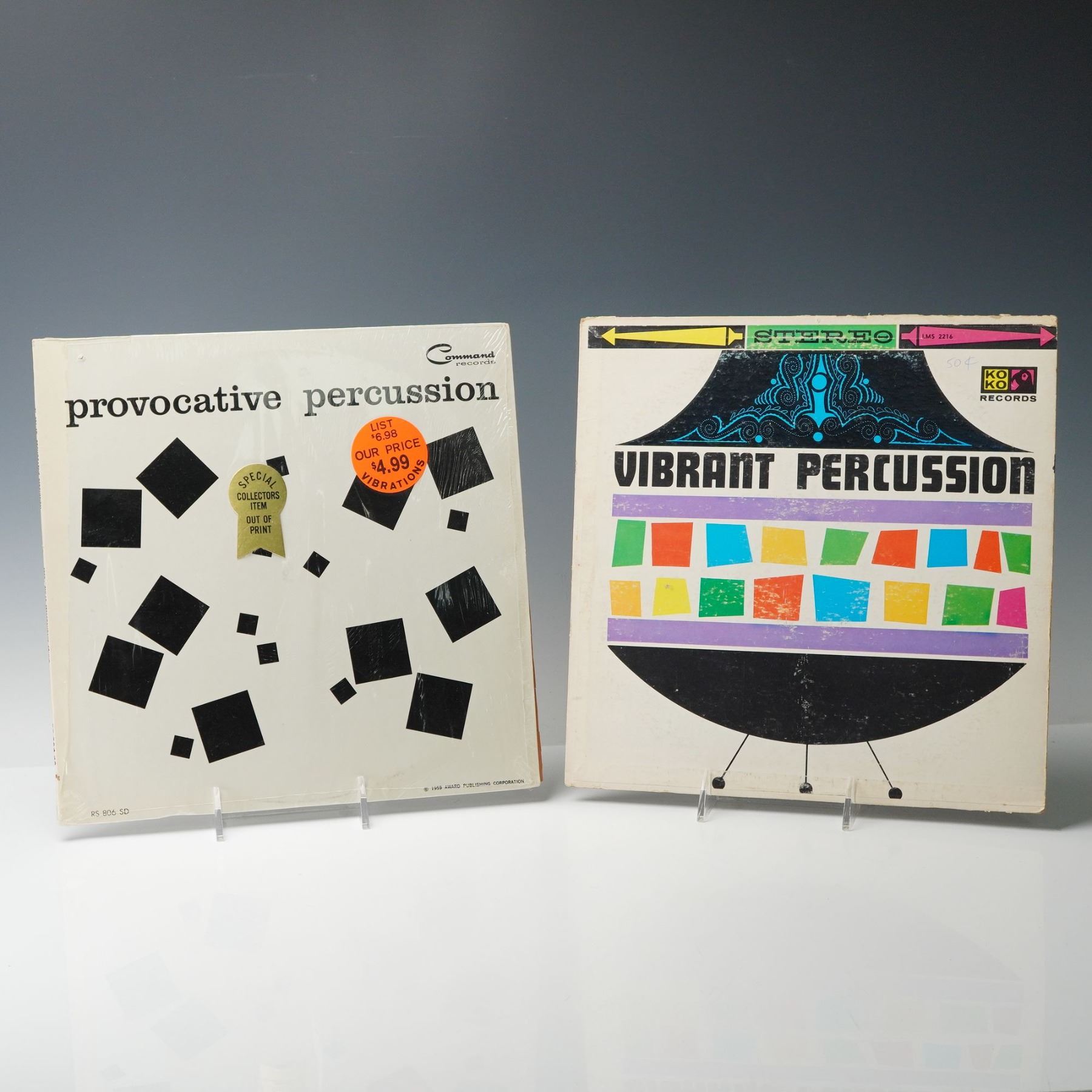 This collection includes five dynamic percussion and jazz vinyl records: Wing and a Prayer by Babyface, Music from Oil Drums, The Mighty Two featuring Louis Bellson & Gene Krupa, Vibrant Percussion, and Provocative Percussion. A lively mix of rhythmic experimentation and legendary drummers, all in their original covers.