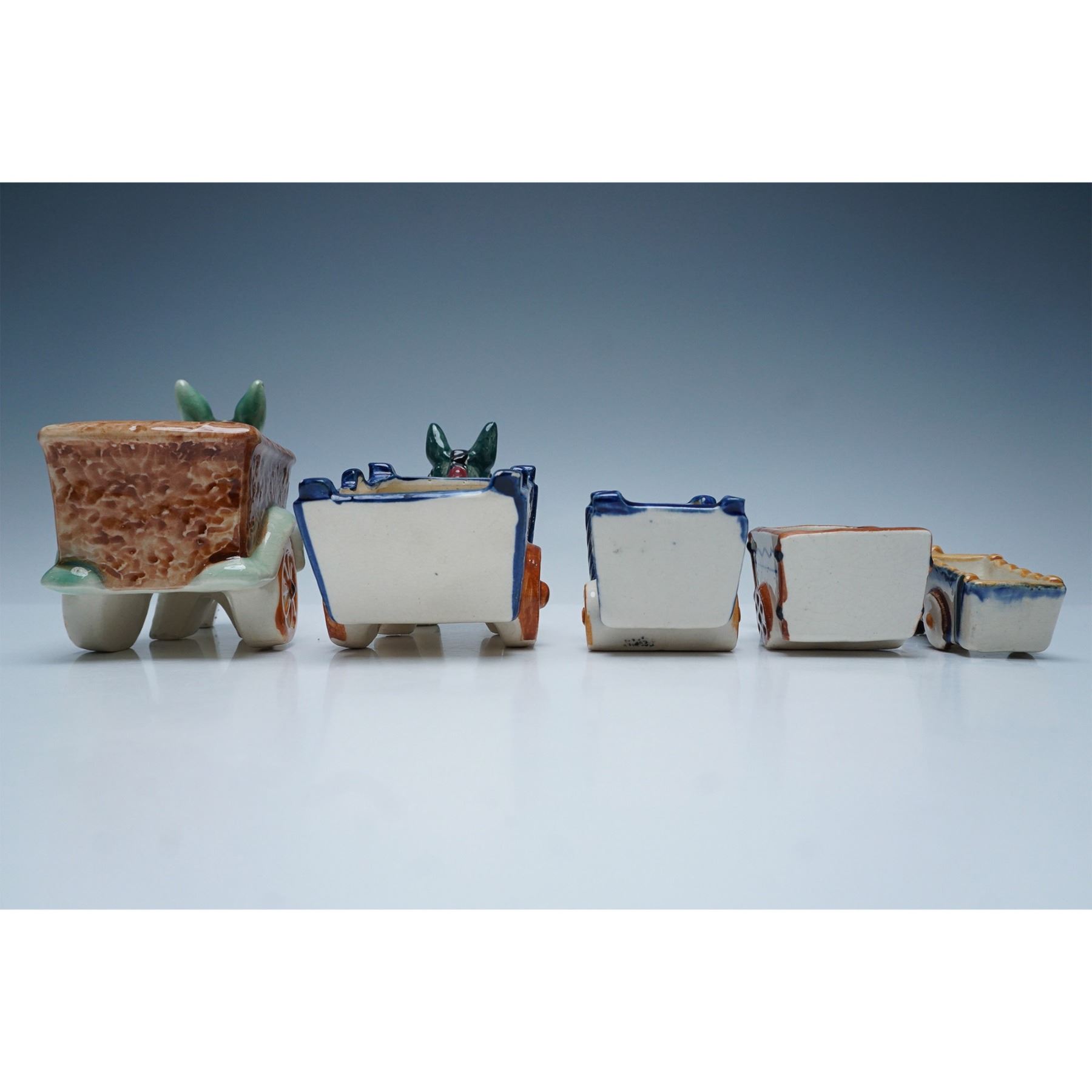 5pc Porcelain Donkey Cart Planters, Made in Occupied Japan