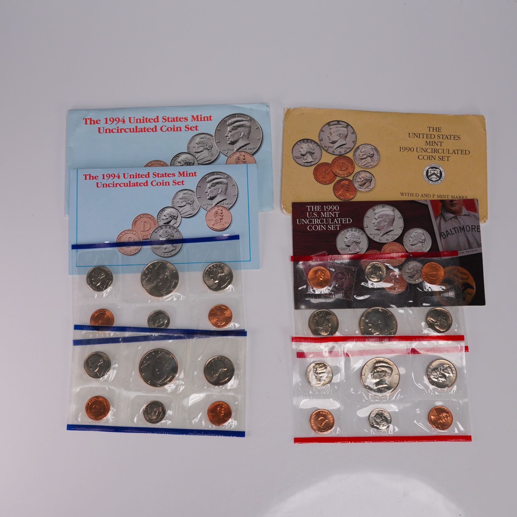 5pc U.S. Mint 1990, 1994, and 2002 Minted Coin Sets