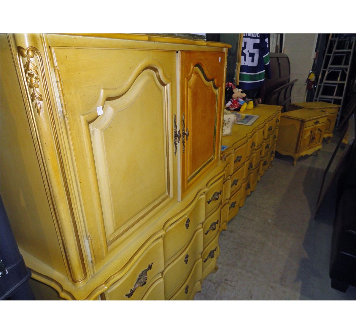 9 drawer dresser with mirror, highboy armoire and 2 night stands