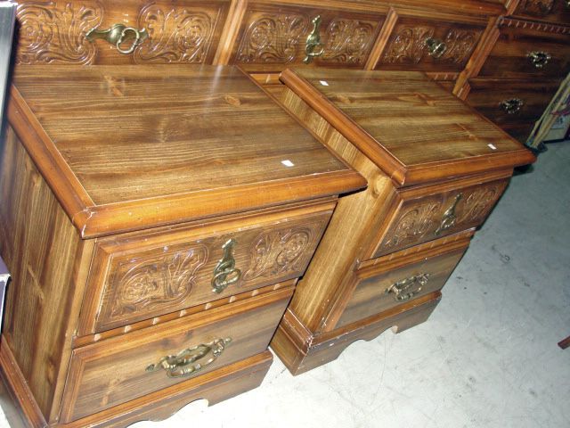 9 drawer dresser with mirror, 5 drawer high boy and 2 matching night tables