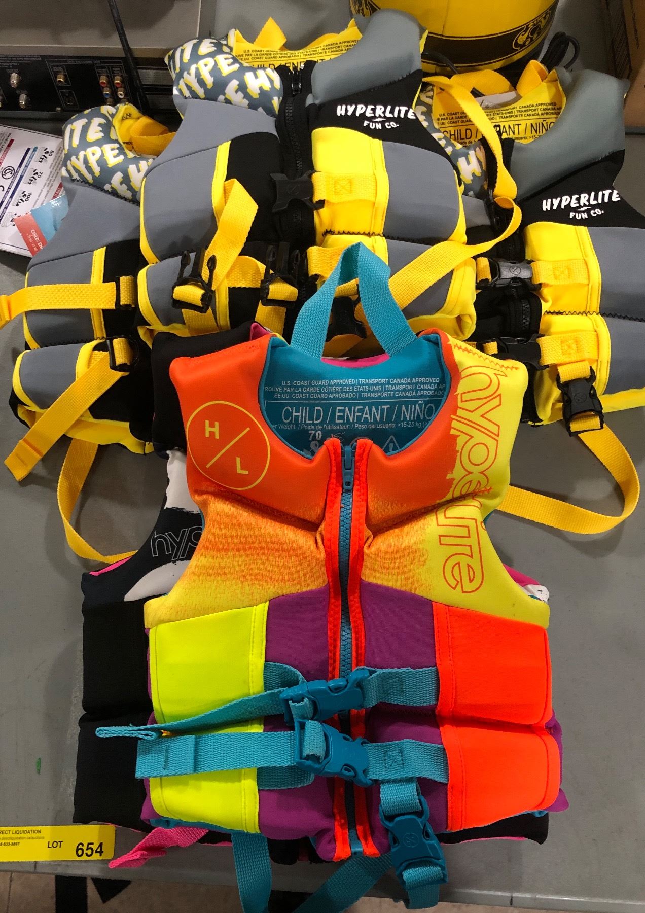 5pc lot - Hyperlite H2O life vests (4 child/infant size & 1 youth)