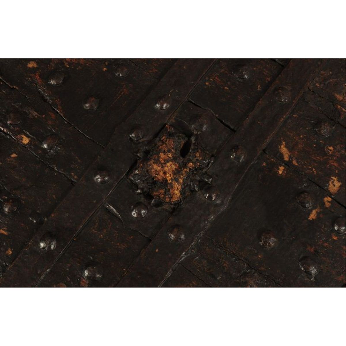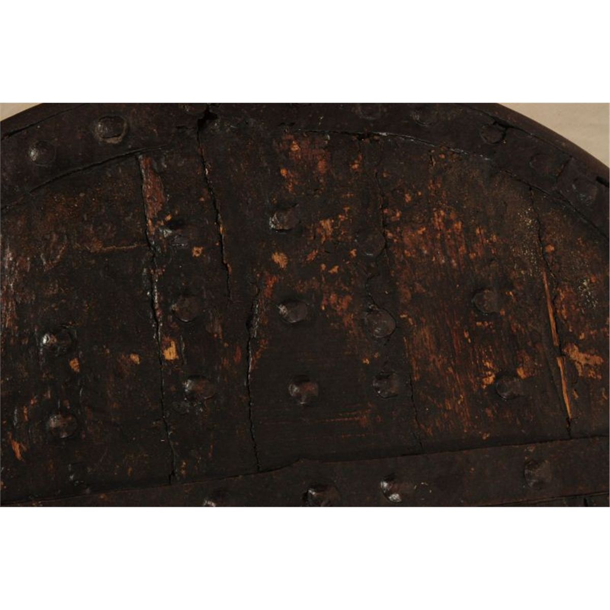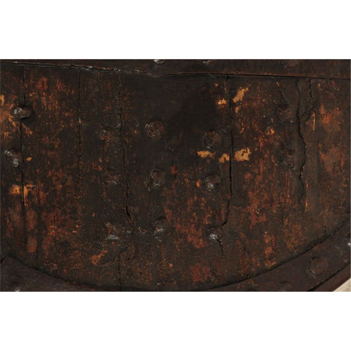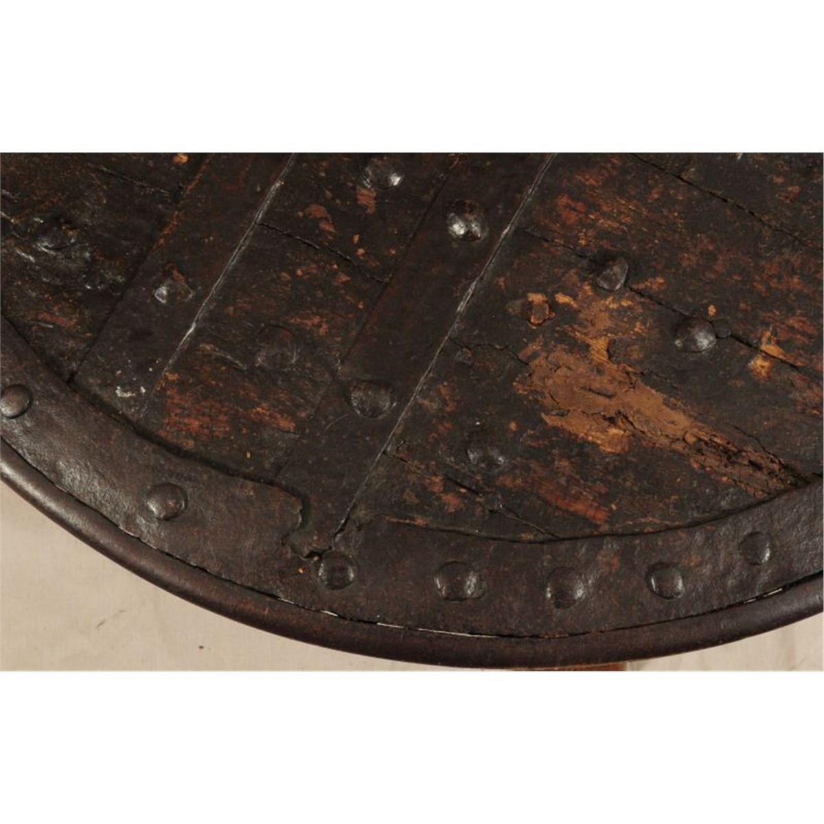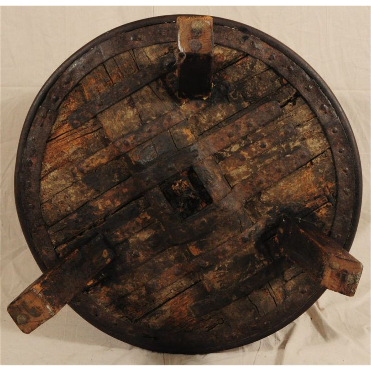 Early hand forged wheel attributed as Roman. Was acquired in England by Louis Marshall in the 1980s. The wheel that has been converted into a table. Measures 15" Tall and 40" Across Not sure of exact age. Somewhere between 5th & 15th century.