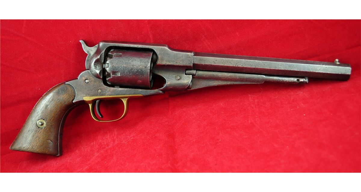 Remington Model 1858, New Army, Cap and Ball 6 Shot Revolver, 8" Inch Bbl. Mfg.1863, Ser.#37293, 44 Cal., Issued to 5th Illinois, Volunteer Cavalry in 1865. Gun has wear and pitting. Pistol is being sold for collecting and decorative purposes, NOT for firing. See photos for more information.Kennedys Auction Service has not attempted to test fire any gun in this auction and all guns are sold in "AS IS CONDITION" and are not guaranteed to be operational.