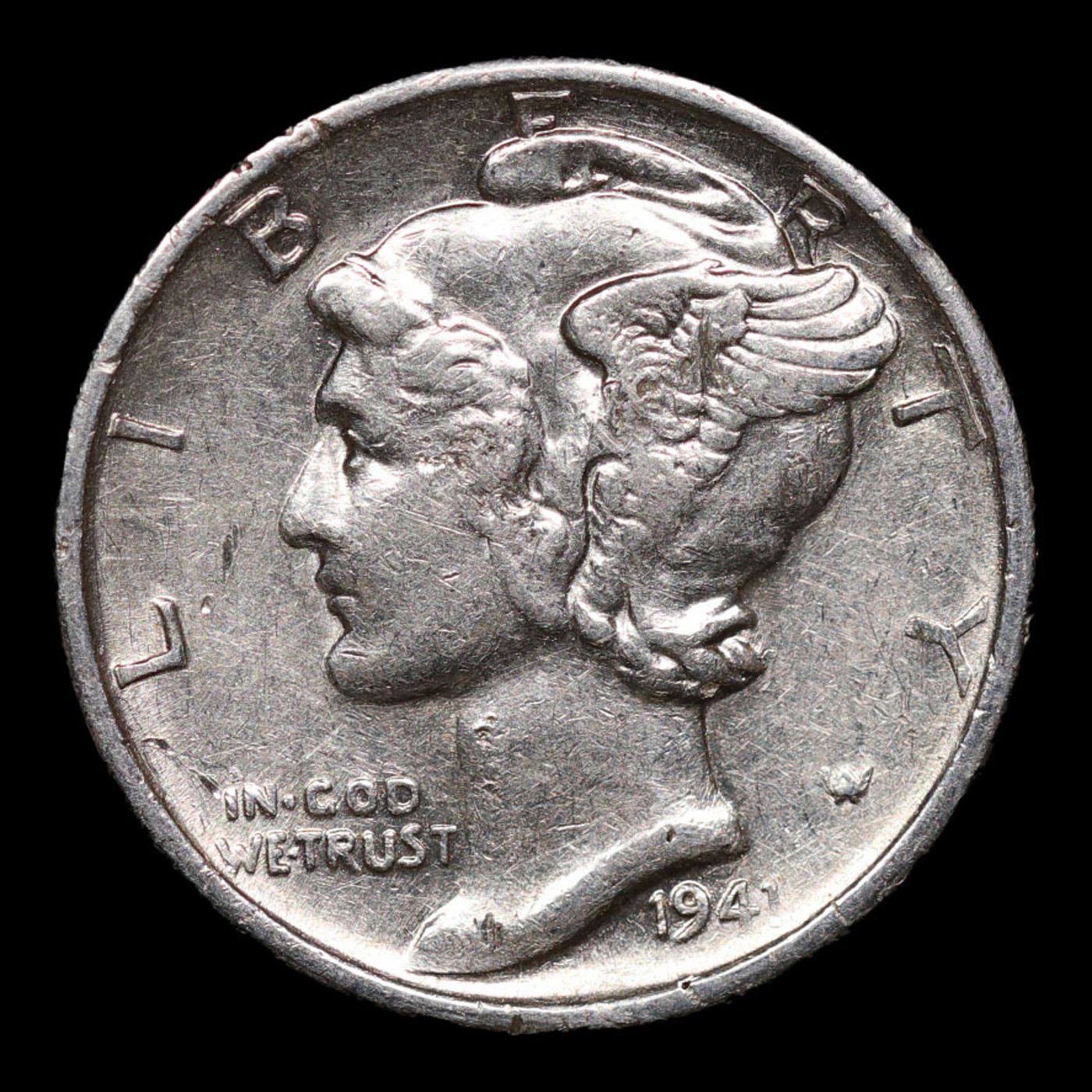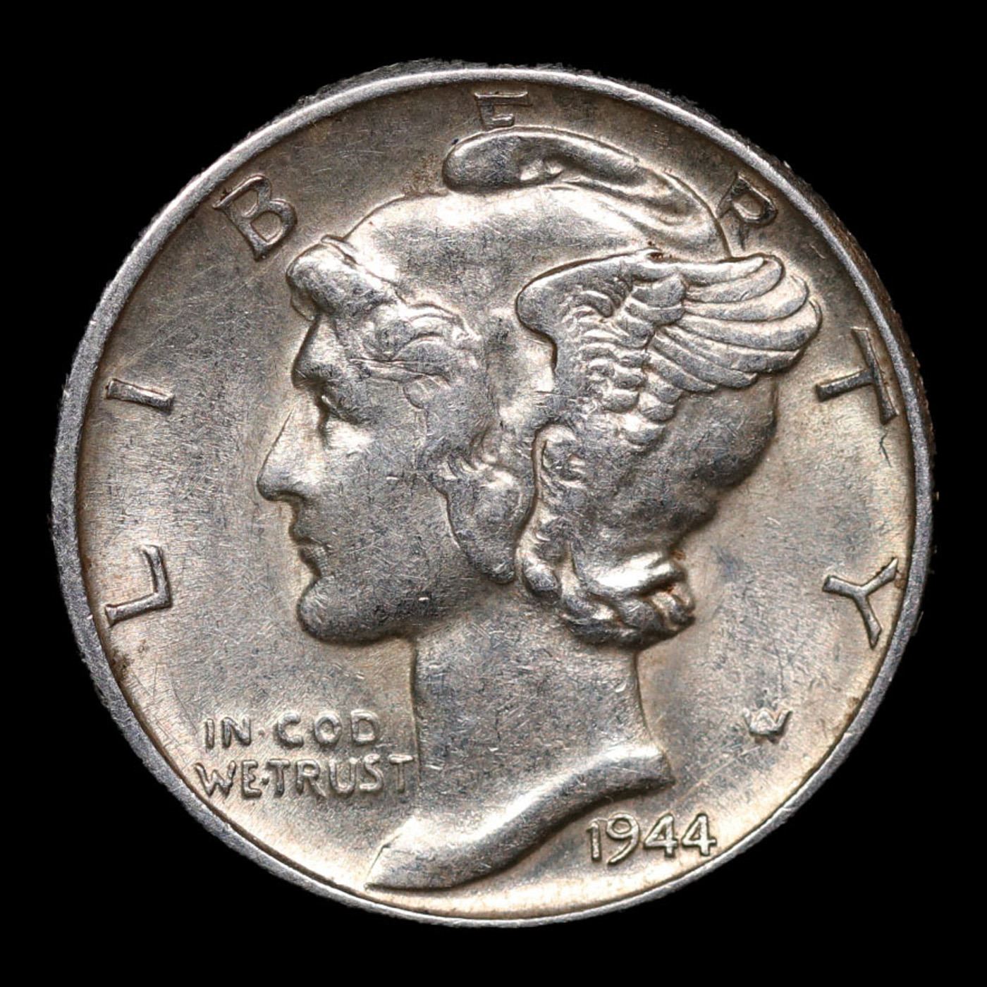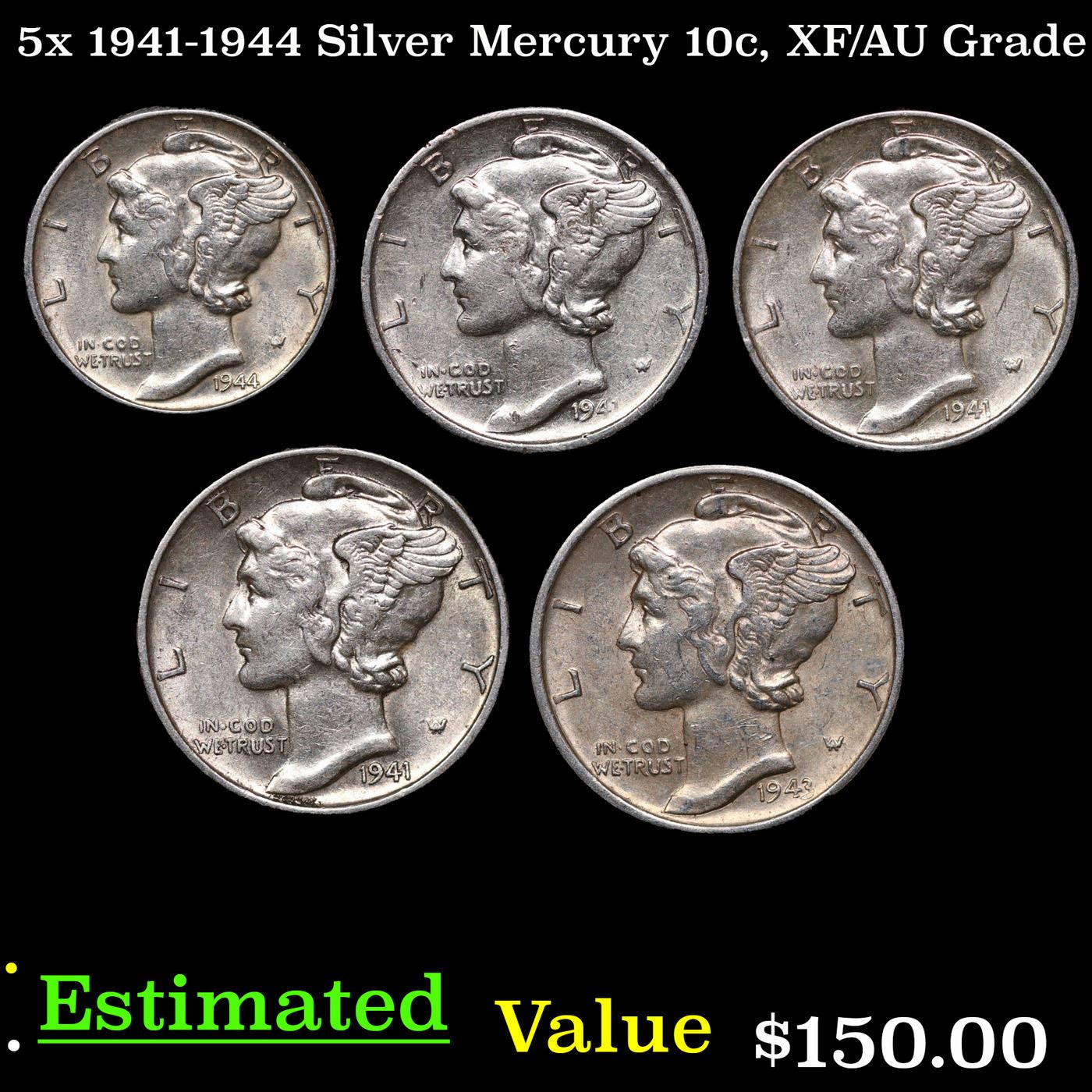 5x 1941-1944 Silver Mercury 10c, XF/BU Grade Mercury Dime 10c
