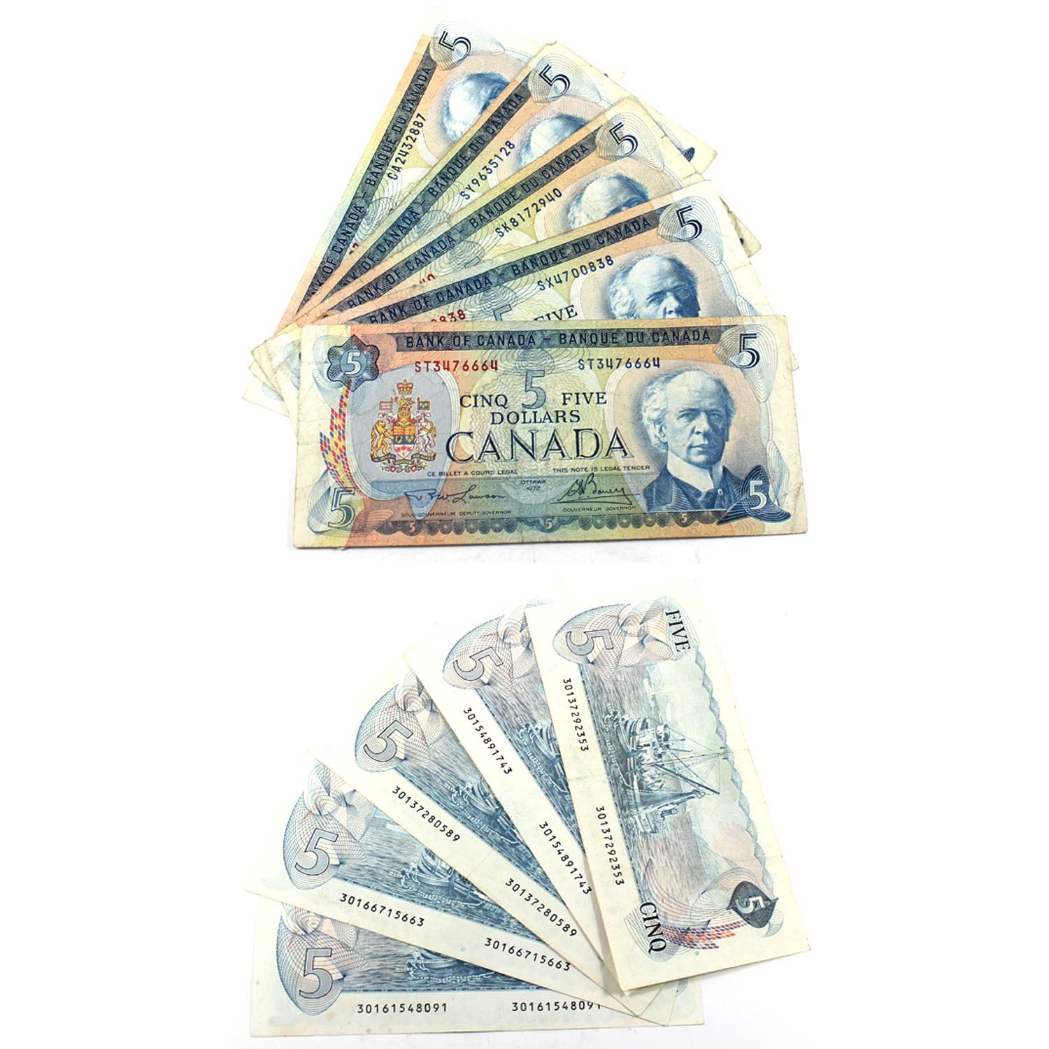 5x 1972 & 5x 1979 $5 Bank of Canada Notes - All with Lawson-Bouey Signatures Except a 1972 Bouey-Rasminsky. 10pcs