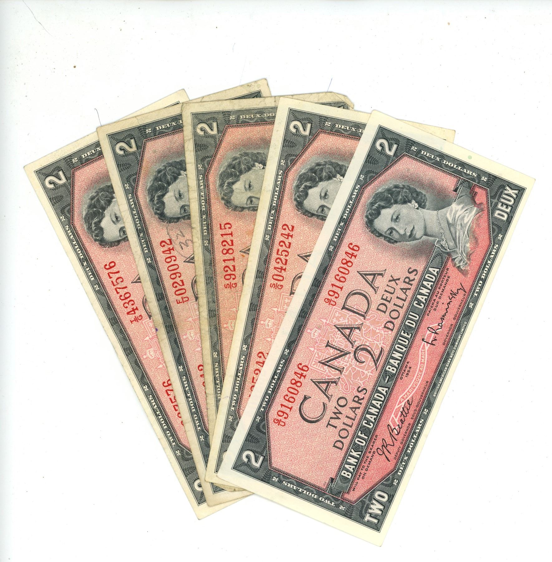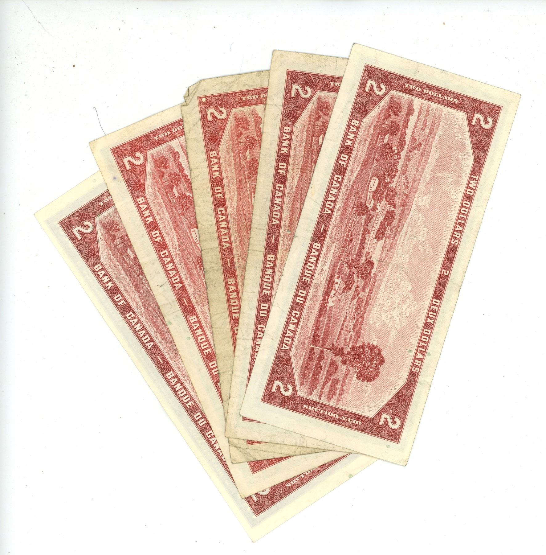 5x - 2$ Canadian Dollar Bills, circa 1954