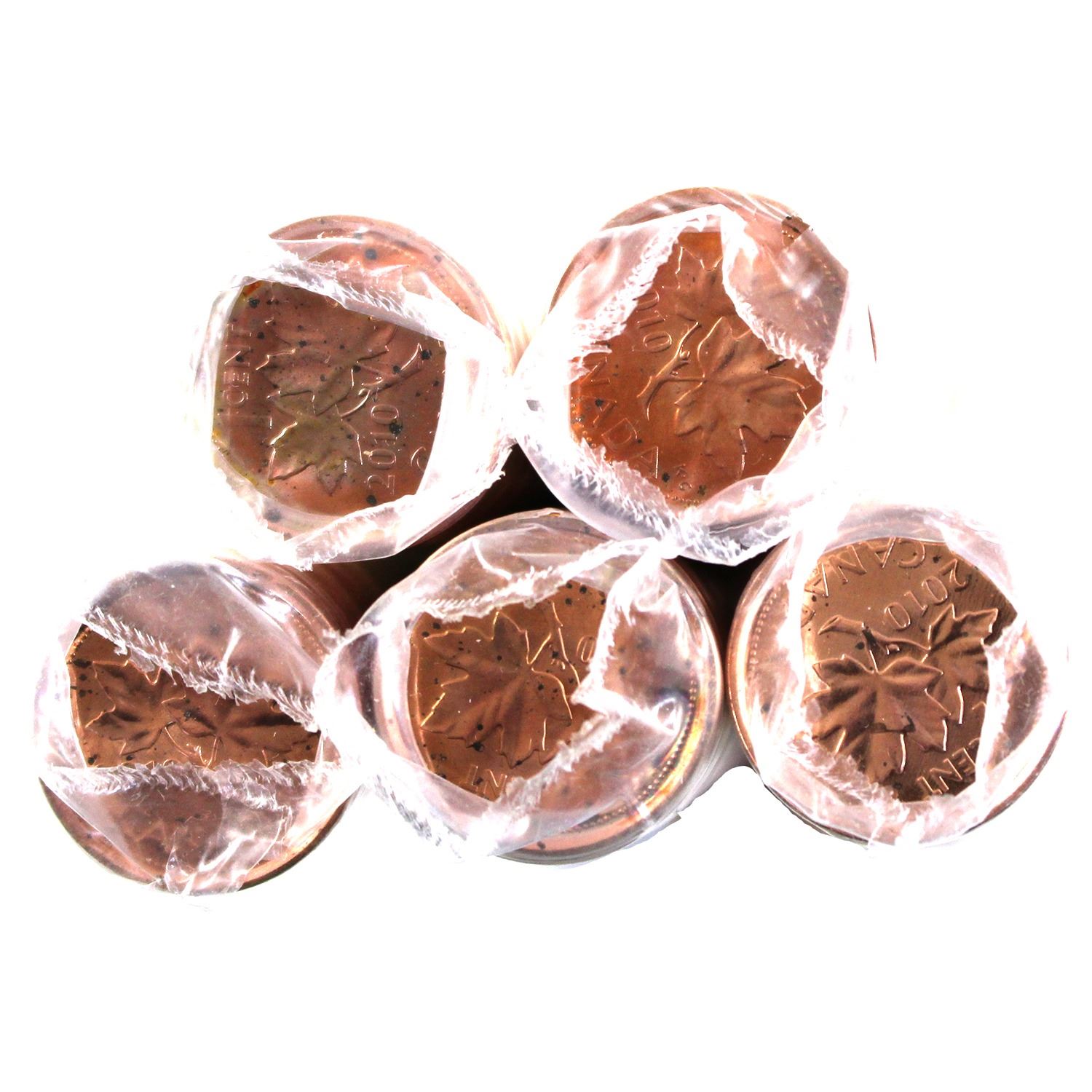5x Canada 2010 1-cent Rolls of 50pcs. Coins have been naturally toned. 5 Rolls.