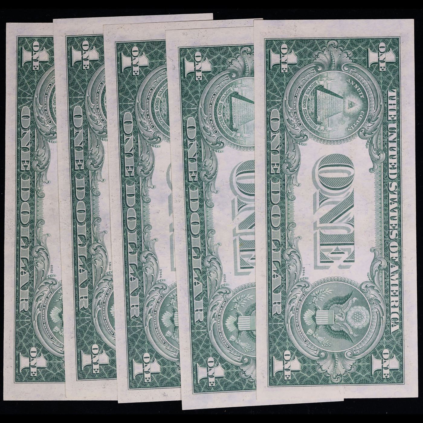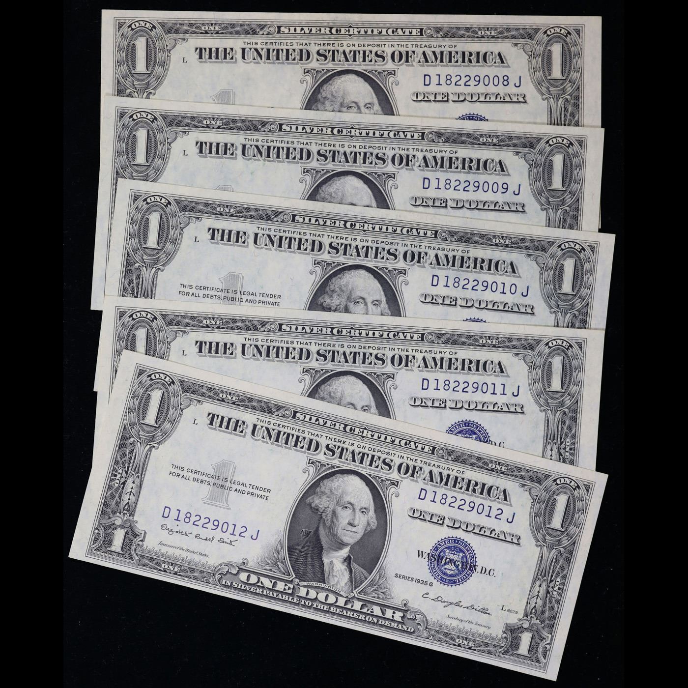 5x Consecutive 1935G $1 Blue Seal Silver Certificates, All CU! Grades CU