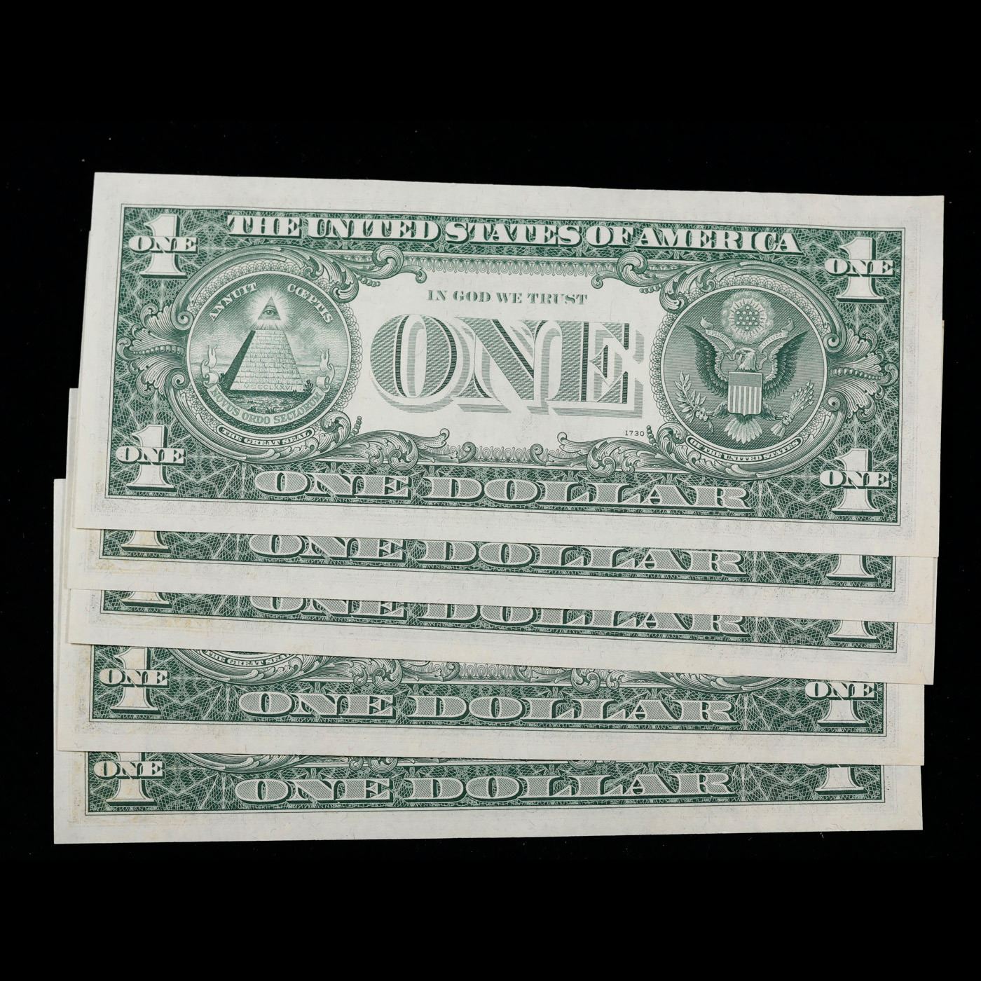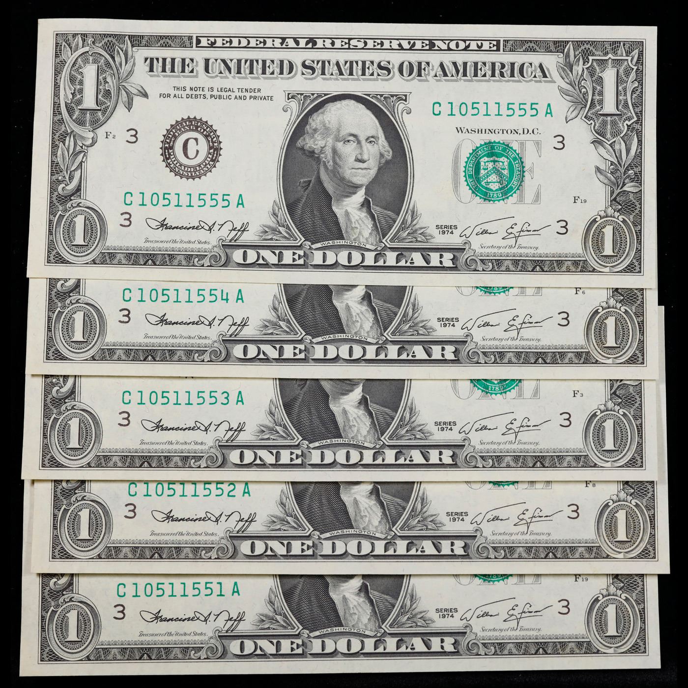 5x Consecutive 1974 $1 Federal Reserve Notes (Philadelphia, PA), All CU Grades CU