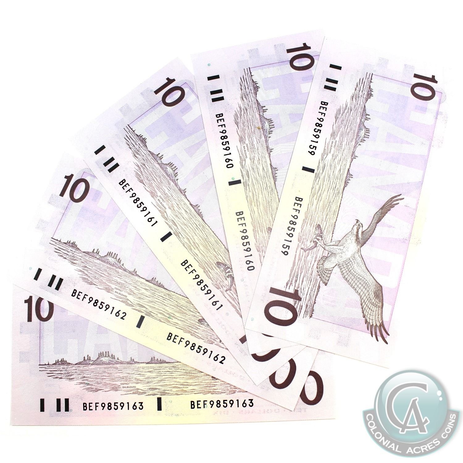 5x Consecutive 1989 Bank of Canada $10 Knight-Thiessen BEF/9859159/60/61/62/63 GUNC. 5pcs.