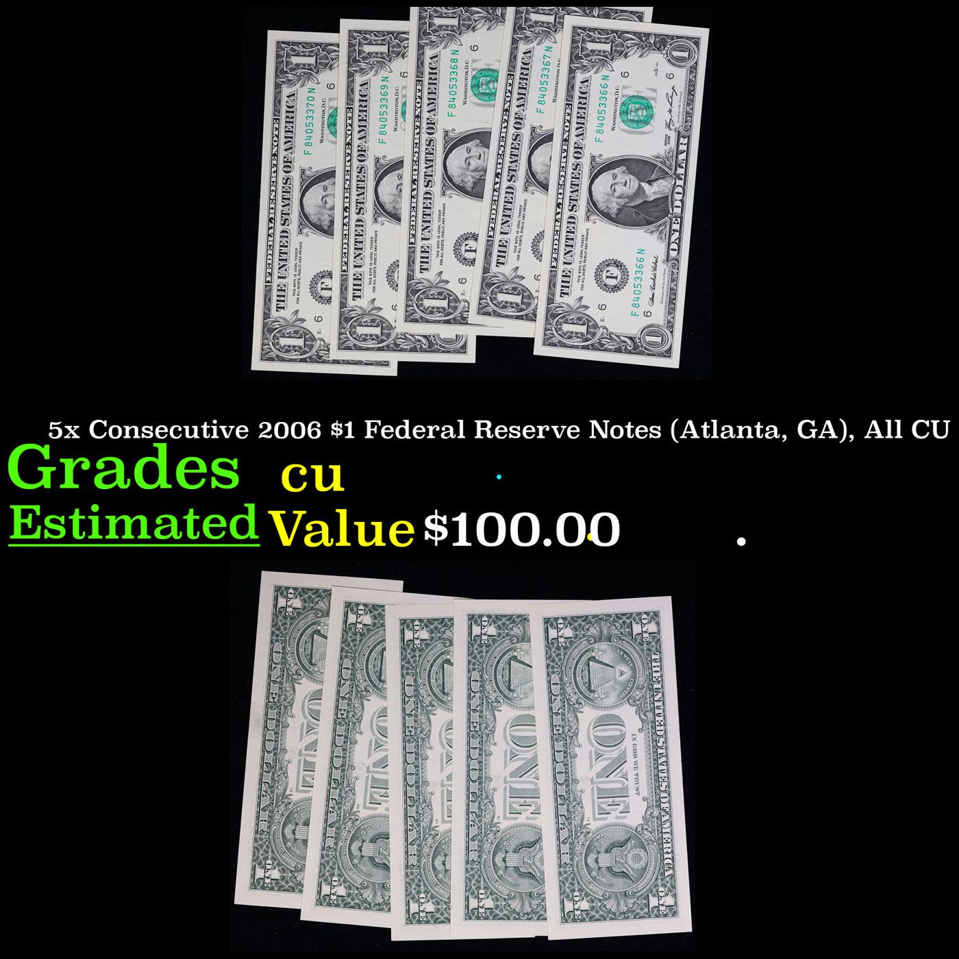 5x Consecutive 2006 $1 Federal Reserve Notes (Atlanta, GA), All CU Grades CU