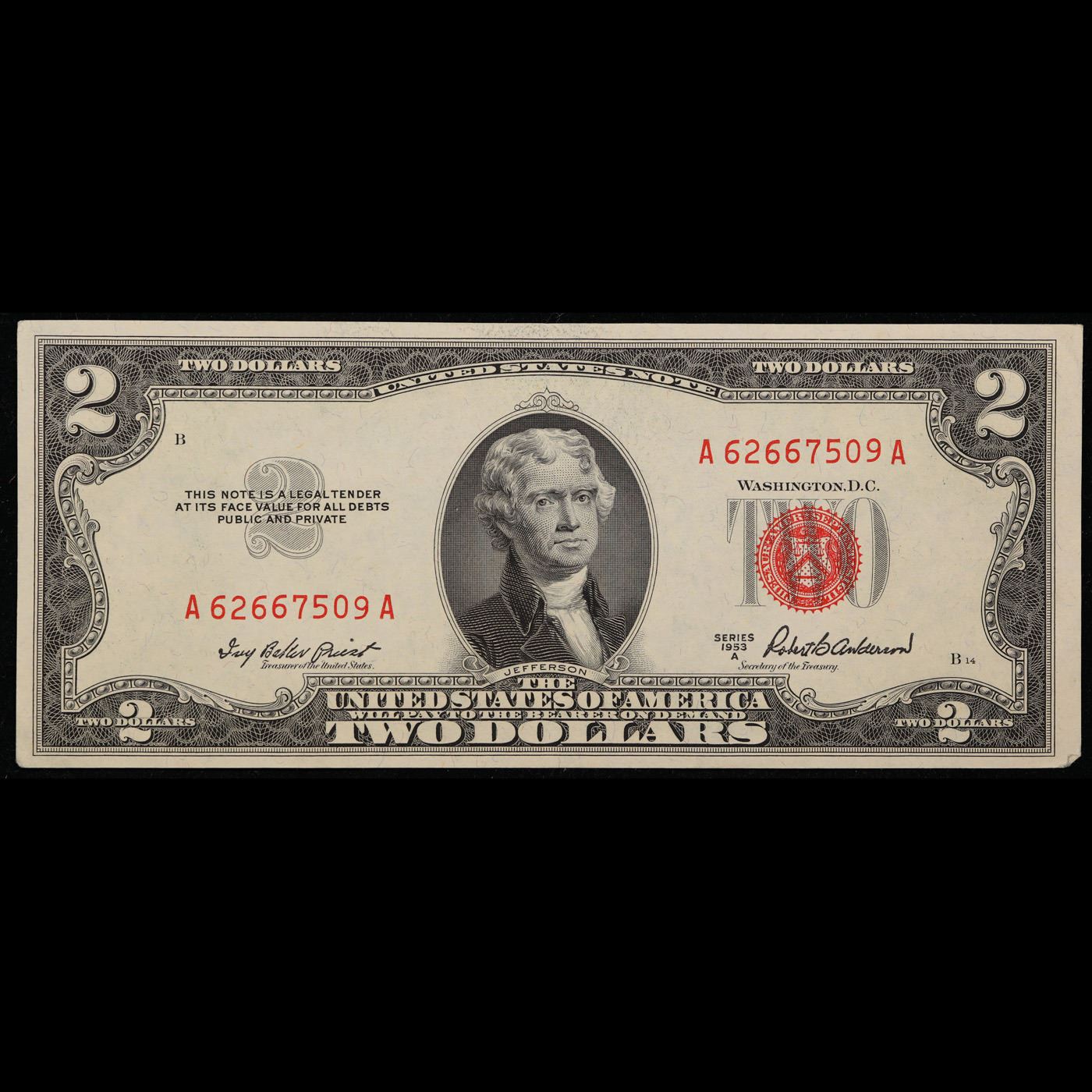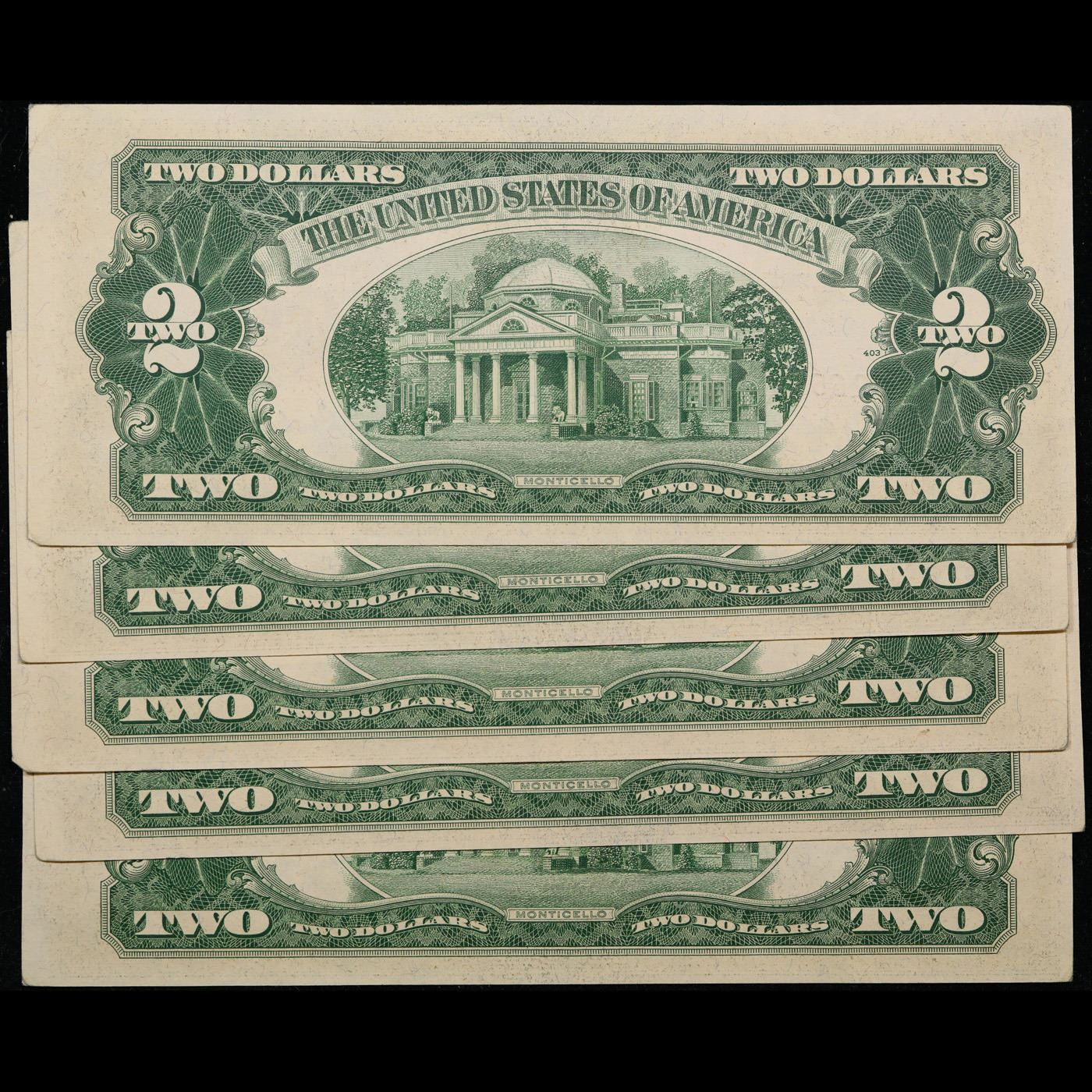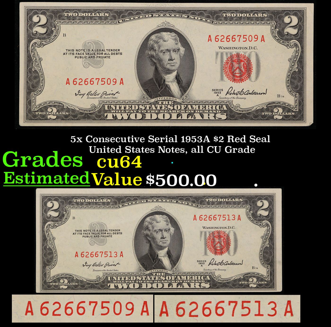 5x Consecutive Serial 1953A $2 Red Seal United States Notes, all CU Grade Grades Choice CU.