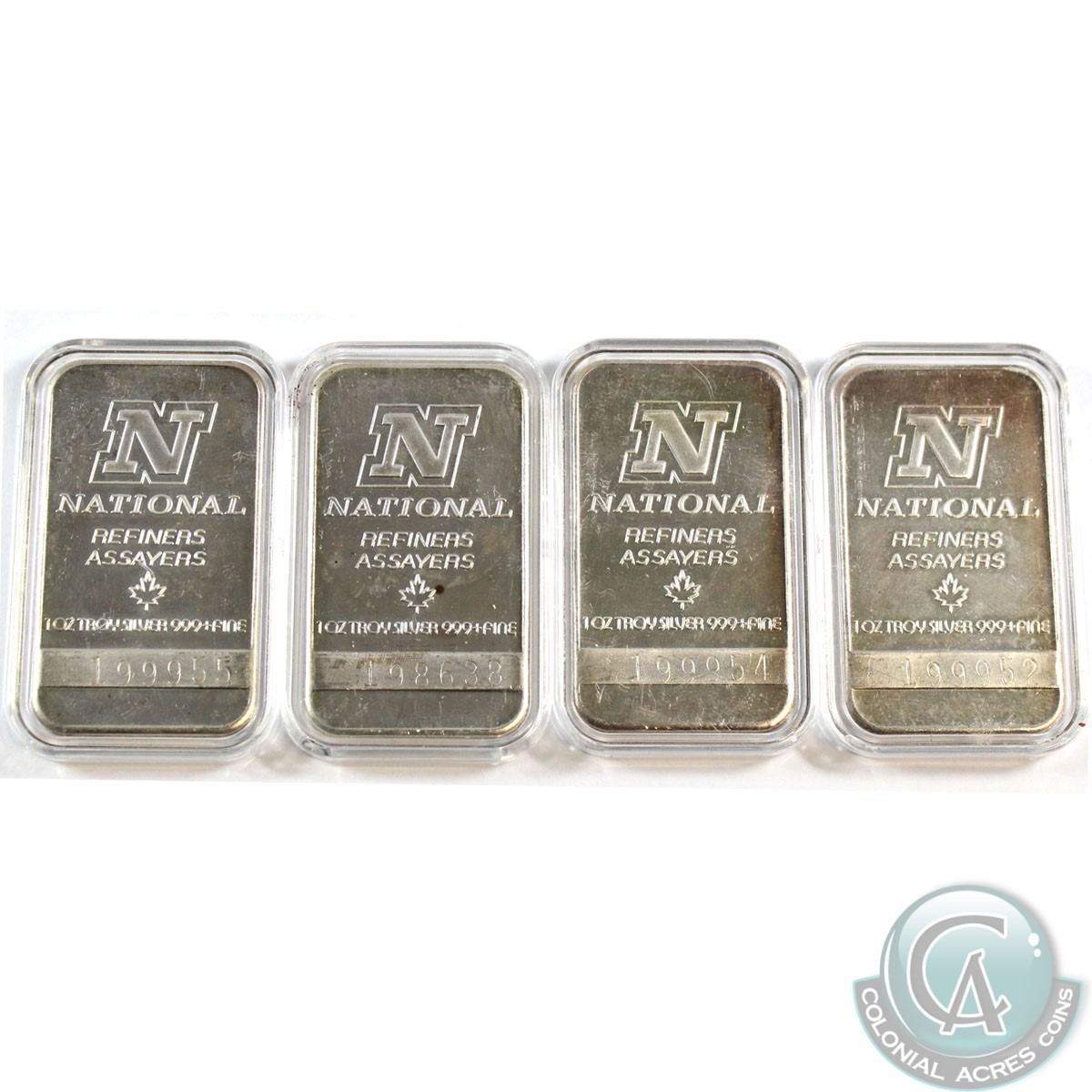 5x National Refiners Canada 1oz Fine Silver Bars encapsulated (Tax Exempt). Toned. 5pcs.