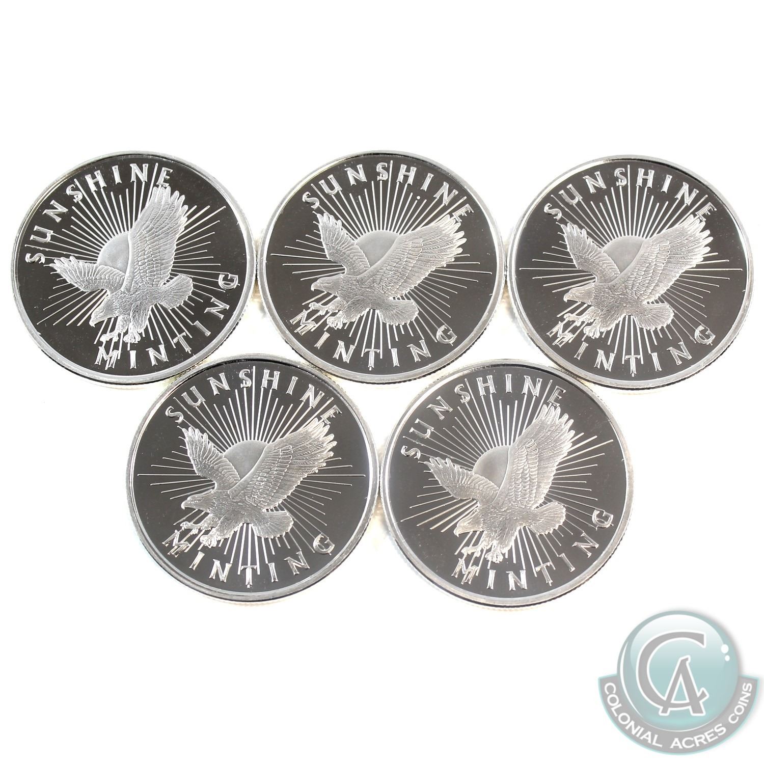 5x Sunshine Mint 1/2oz Fine Silver Rounds (Tax Exempt) 5pcs.