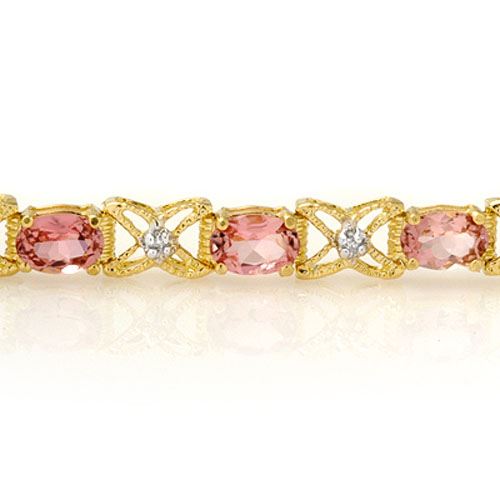 6.0 CTW Pink Tourmaline & Diamond Bracelet 14K Yellow Gold ---- Luxury Designer Brand Bracelet Appraised Retail Price at $8,300 ---- SKU Number US14139 14k Yellow gold Bracelet Size is 7 Inches, Bracelet measuring approx. 7" x 3/16", weighing in total approx. 9 grams. Made in the USA and is stamped 14k, Main stone 5.85 carat total weight containing 14 pieces of Intense Reddish Pink color with AAA quality Oval shape cut Tourmaline , Stone #2 0.15 carat total weight containing 14 pieces of H-I color with VS/SI quality Round shape cut