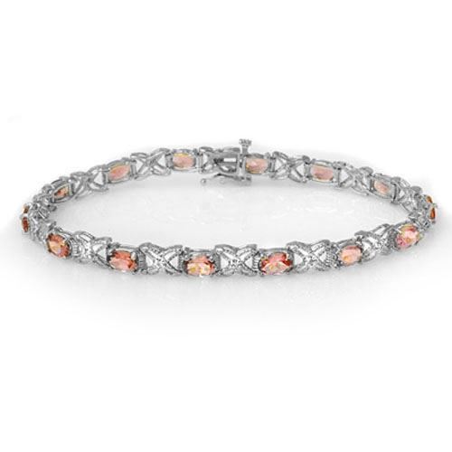 REF-132H5A -14141 ---- 6.0 CTW Pink Tourmaline & Diamond Bracelet 18K White Gold ---- Luxury Designer Brand Bracelet Appraised at $10,200 Certificate Number US14141 18k White gold, Bracelet Size is 7 Inches, Bracelet measuring approx. 7" x 3/16", weighing in total approx. 10.53 grams. Made in the USA and is stamped 18k, Main stone 5.85 carat total weight containing 14 pieces of Intense Reddish Pink color with AAA quality Oval shape cut Tourmaline , Stone #2 0.15 carat total weight containing 14 pieces of H-I color with VS/SI quality Round shape cut Diamond