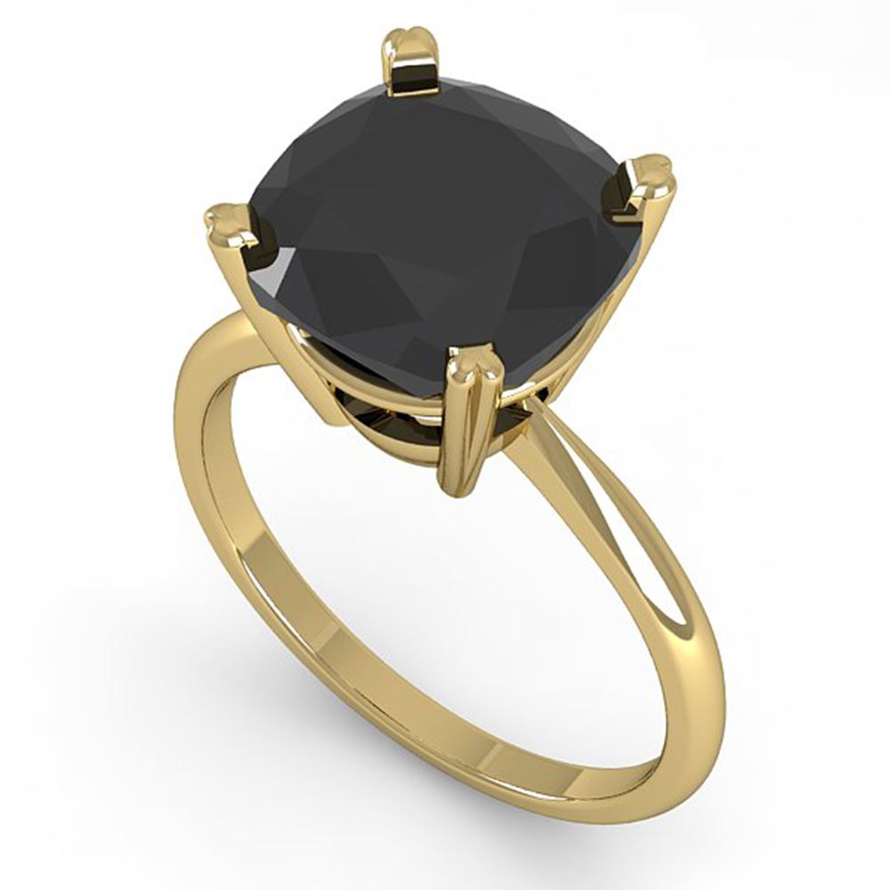 REF-148G5W - SKU: 38489 ---- 6.0 ctw Cushion Black Diamond Engagment Designer Ring 14k Yellow Gold