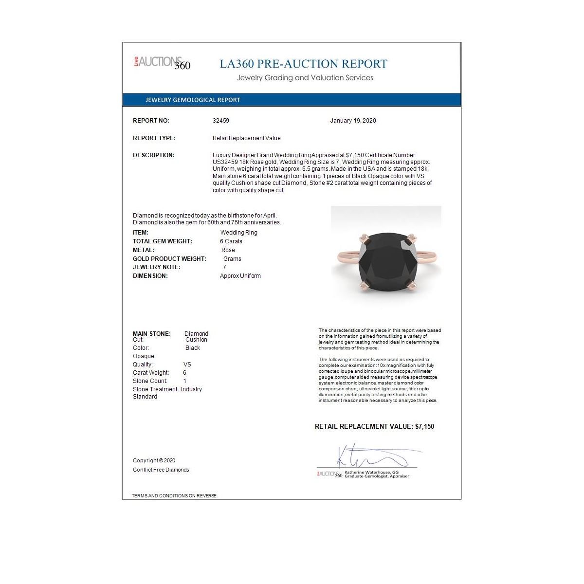 REF-133X8A - SKU: 32459 ---- 6.0 ctw Cushion Black Diamond Engagment Designer Ring 18k Rose Gold