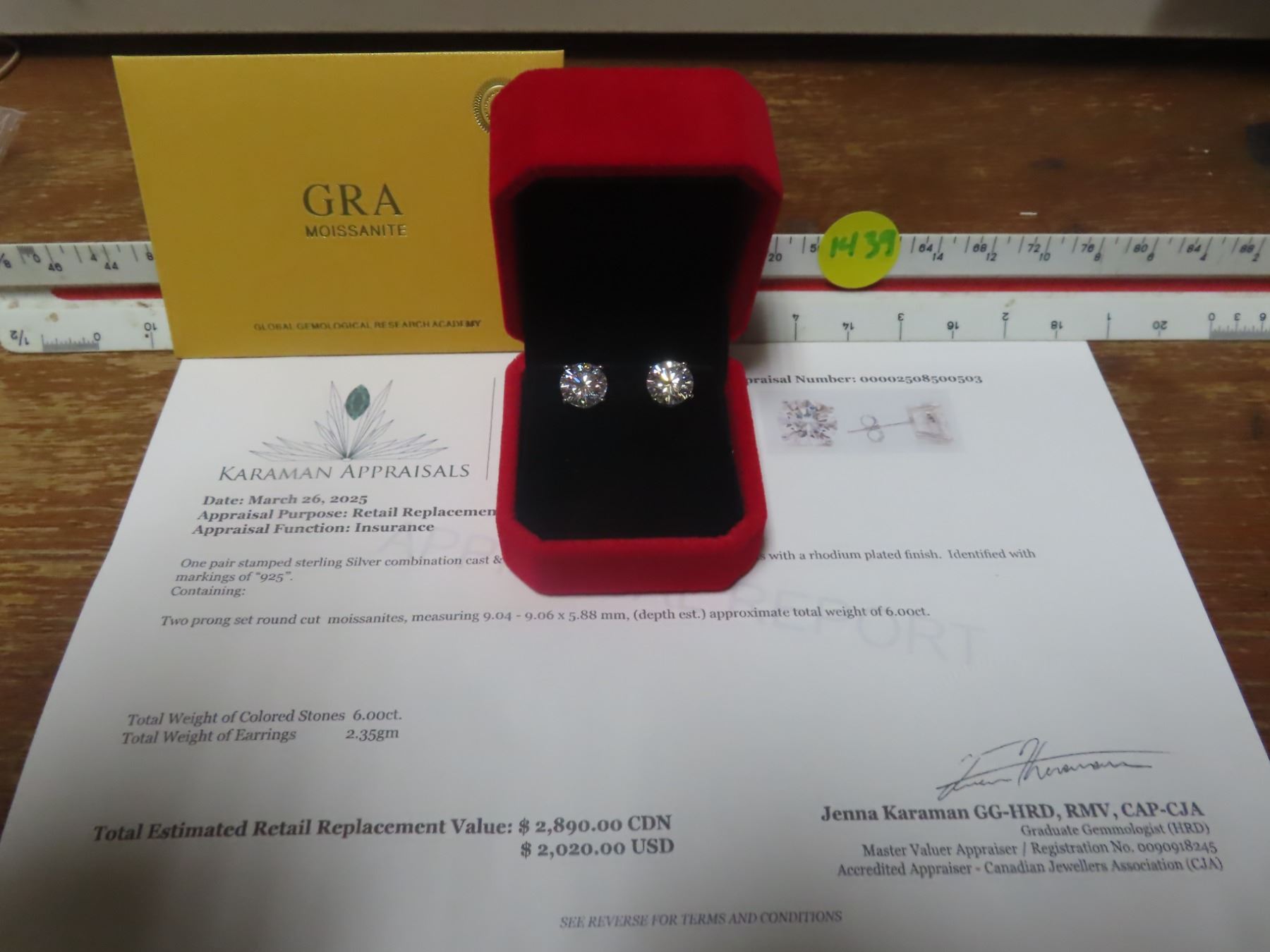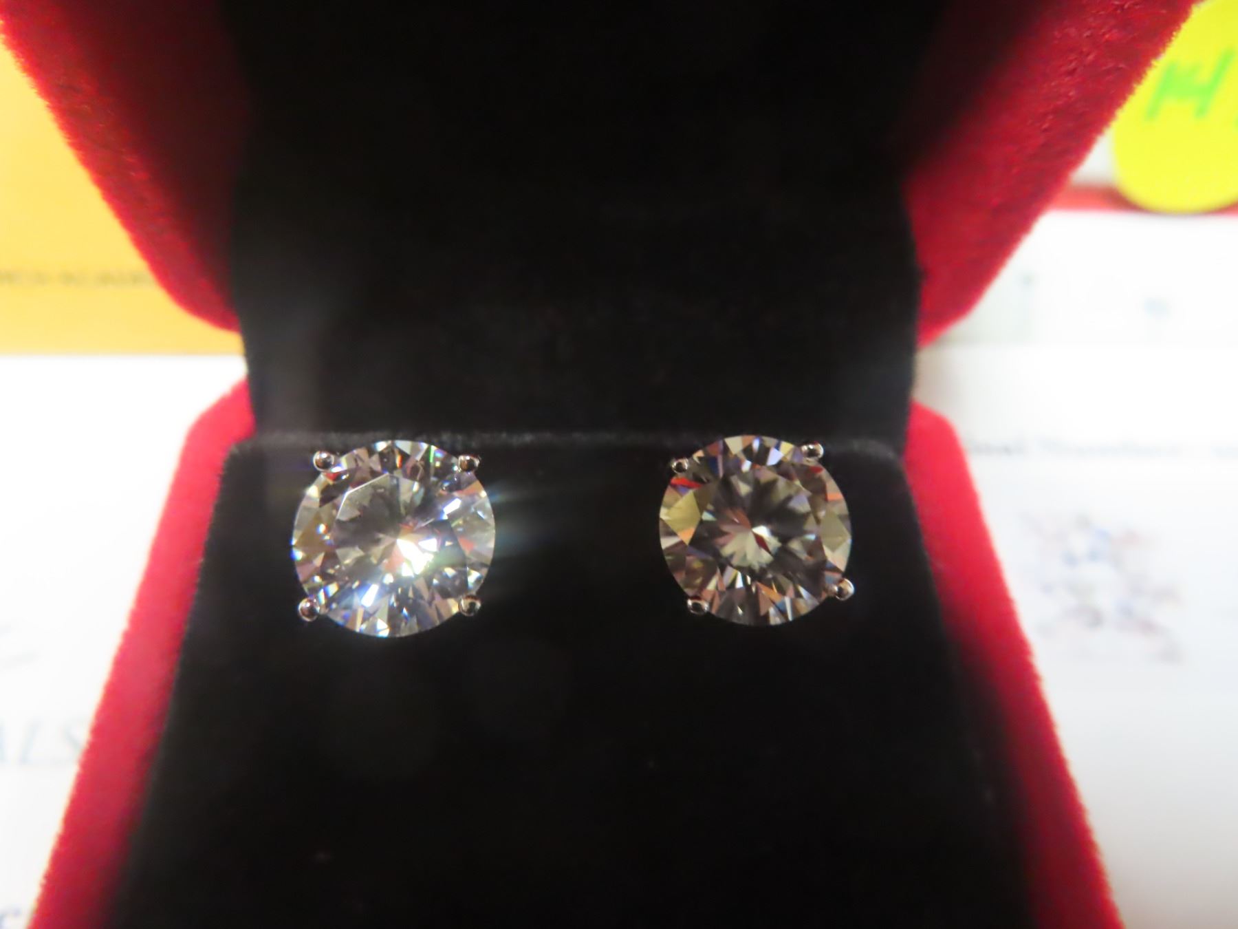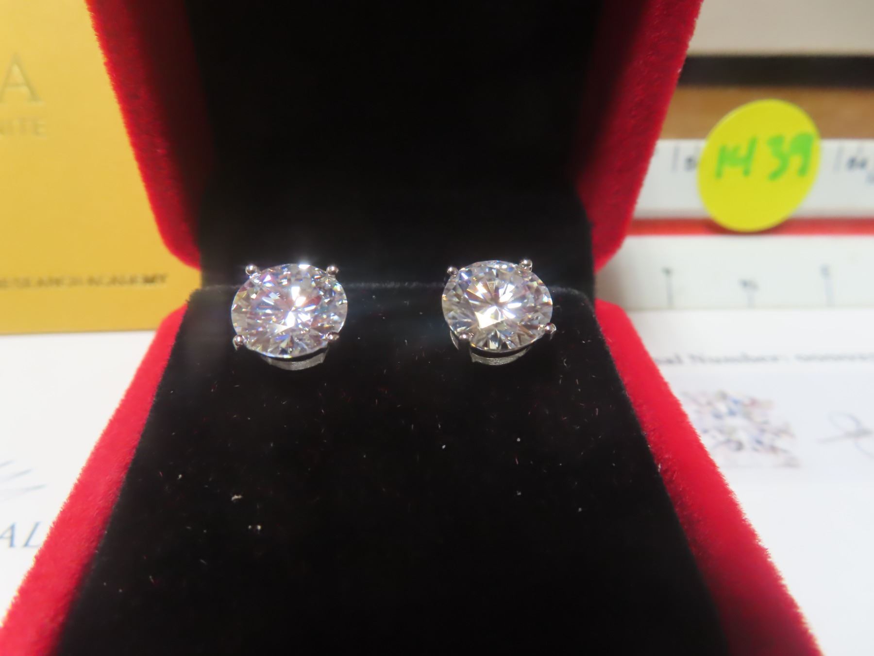 ROUND BRILLIANT CUT MOISSANITE STONES VVS D COLOR SET IN 4 CLAW BASKET SET IN 925 SILVER EARRINGS RETAIL VALUE $2,890.00