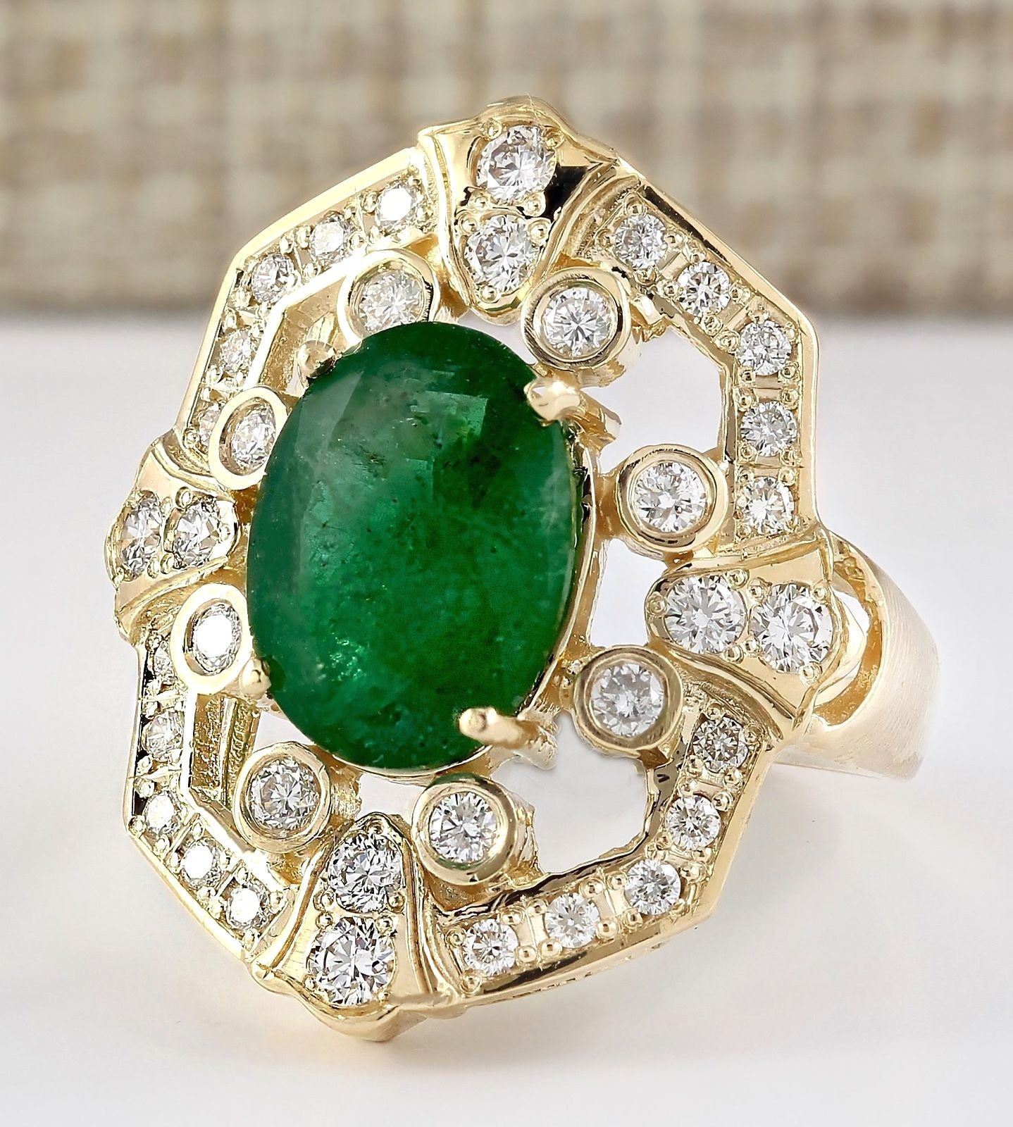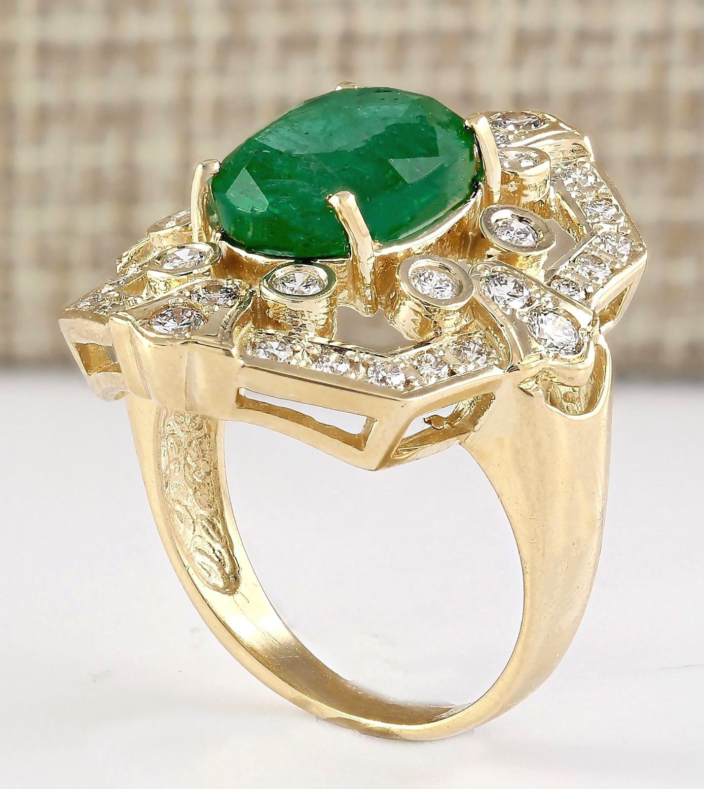 6.00 CTW Natural Emerald And Diamond Ring In 14k Yellow Gold