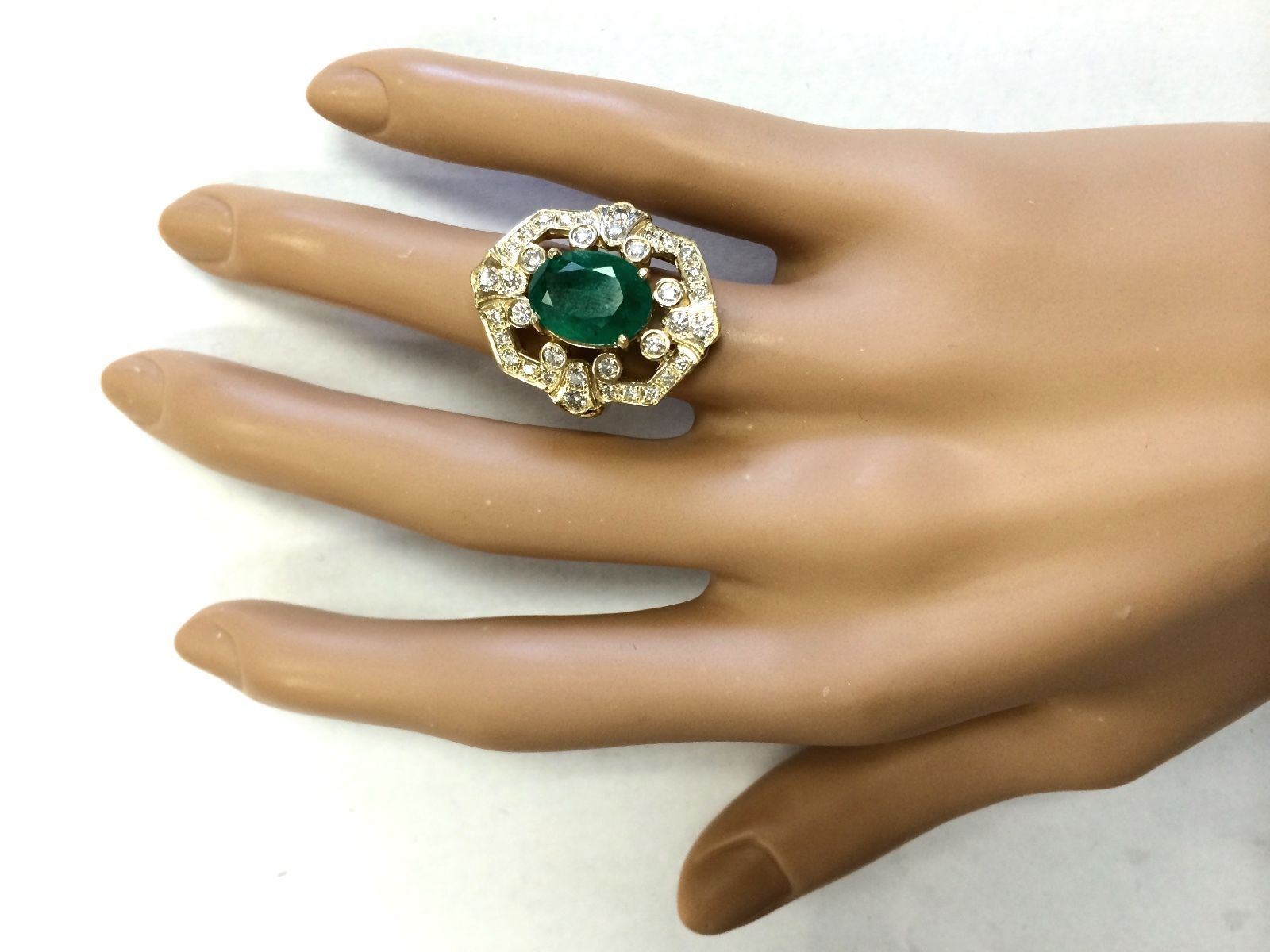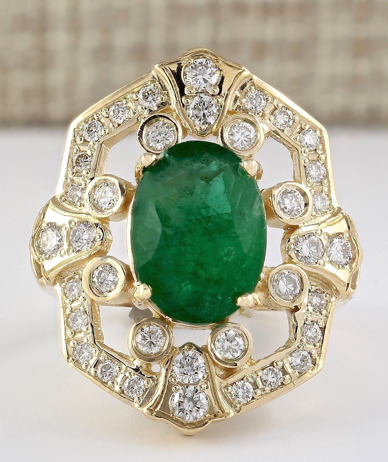 6.00 CTW Natural Emerald And Diamond Ring In 18K Yellow Gold