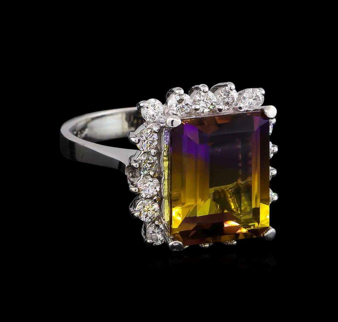 One ring featuring: 14KT white gold weighing 5.61 grams containing one ametrine with a total weight of 6.00ct and side diamonds with a total weight of 0.76ct.