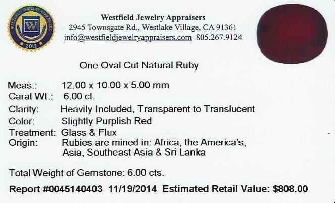 One 6.00 ctw Oval Cut Natural Ruby.