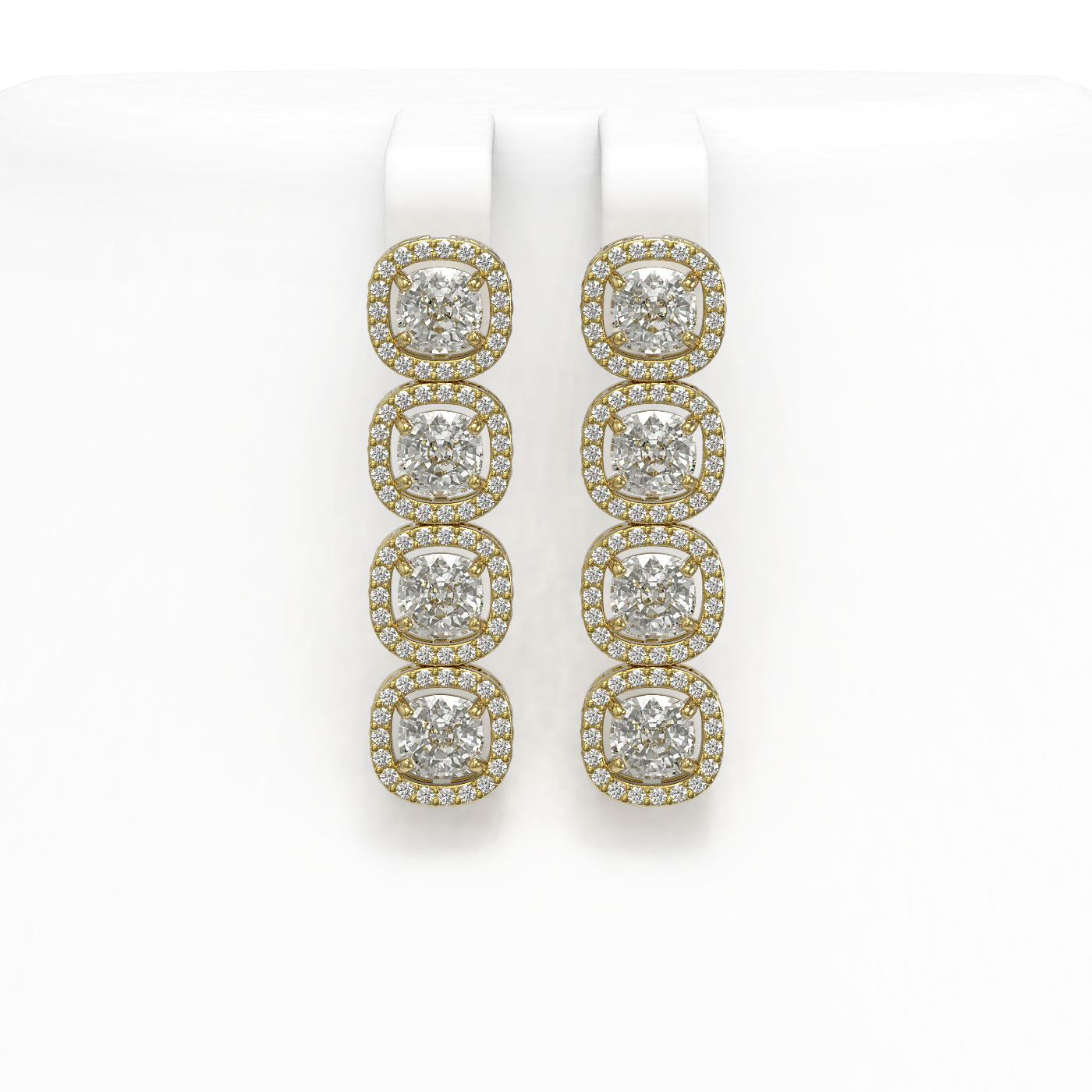 REF-1127A6X -42721 ---- 6.01 CTW Cushion Diamond Designer Earrings 18K Yellow Gold ---- Luxury Designer Brand Earring Appraised at $49,600 Certificate Number US42721 18K Yellow gold, Earring Size is 1 1/4 Inches Long, Earring measuring approx. 8 x 32 mm Long, weighing in total approx. 8 grams. Made in the USA and is stamped 18K, Main stone 4.8 carat total weight containing 8 pieces of I-J color with VS/SI quality Cushion shape cut Diamond , Stone #2 1.21 carat total weight containing 152 pieces of G-H color with VS/SI quality Round shape cut Diamond