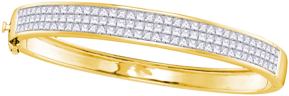 REF-879M8A ---- 6.01 CTW Princess Natural Diamond Luxury Bangle Bracelet 14K Yellow Gold - SKU: GD107379