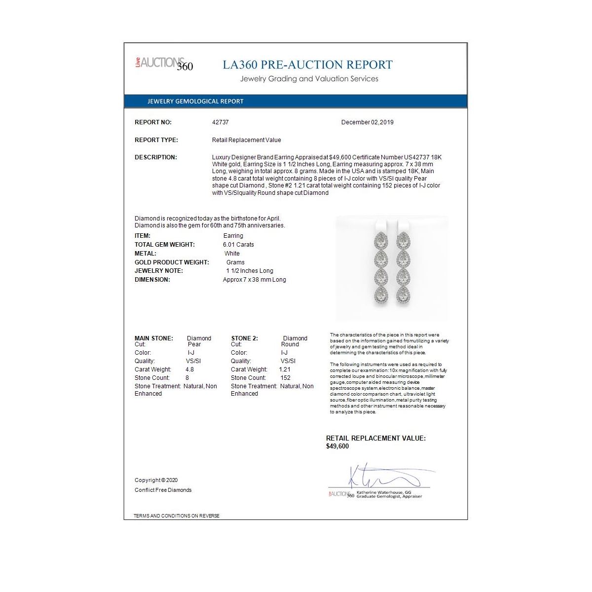 All sales are final, placing a bid is a legally binding obligation. All lots are sold as is, where is, with all the faults, imperfections, omissions and errors in the written description, estimates, appraisals, graphics and photography. USJL is not responsible for any errors or omissions in the description, graphics or photography provided or in the bidding software. Due diligence to verify the condition and description of a lot is the sole responsibility of the Bidder prior to placing any bid. Returns may only be made with the advance written authorization of USJL and are in USJL's sole discretion to approve. To request a return you must provide a written request fully explaining the basis for the return no later than 4 days after your receipt of the lot. Under no circumstances will any amounts other than the winning bid amount be refunded. A restocking charge of 19% of the full invoice amount may apply in USJL 's sole discretion. Any allowed returns must be received in exactly the same condition as when originally shipped to Buyer, or they will be returned to buyer at Buyer's cost. Any unauthorized returns will be refused. DELIVERY REFUSAL OF ITEMS SHIPPED BY US JEWELRY LIQUIDATION TO THE BIDDER CONSTITUTES AN UNAUTHORIZED RETURN IN DIRECT VIOLATION OF THESE GENERAL TERMS AND CONDITIONS.