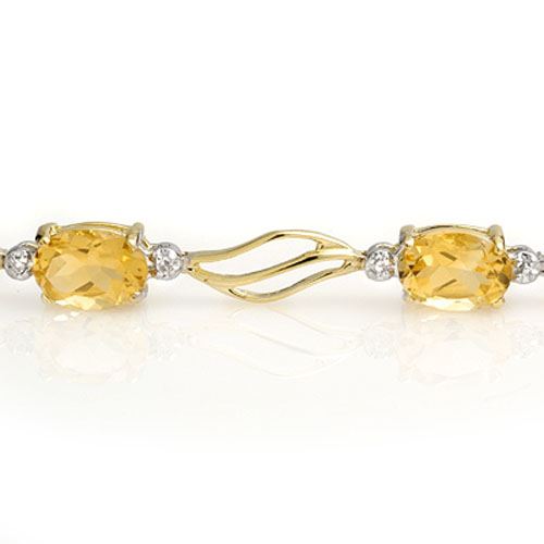 REF-34A8X -10803 ---- 6.02 CTW Citrine & Diamond Bracelet 10K Yellow Gold ---- Luxury Designer Brand Bracelet Appraised at $2,100 Certificate Number US10803 10k Yellow gold, Bracelet Size is 7 Inches, Bracelet measuring approx. 7" x 3/16", weighing in total approx. 5.9 grams. Made in the USA and is stamped 10k, Main stone 6 carat total weight containing 8 pieces of Translucent Yellow color with AAA quality Oval shape cut Citrine , Stone #2 0.02 carat total weight containing 2 pieces of H-I color with VS/SI quality Round shape cut Diamond