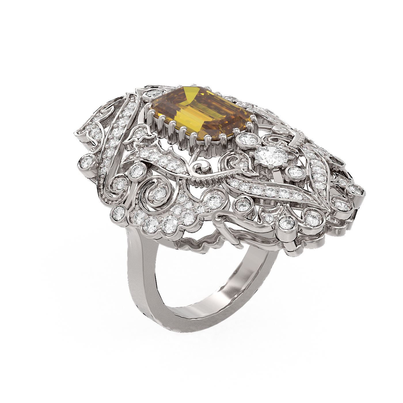 SKU: 53485 ---- 6.02 ctw Canary Citrine & Diamond Ring 18K White Gold