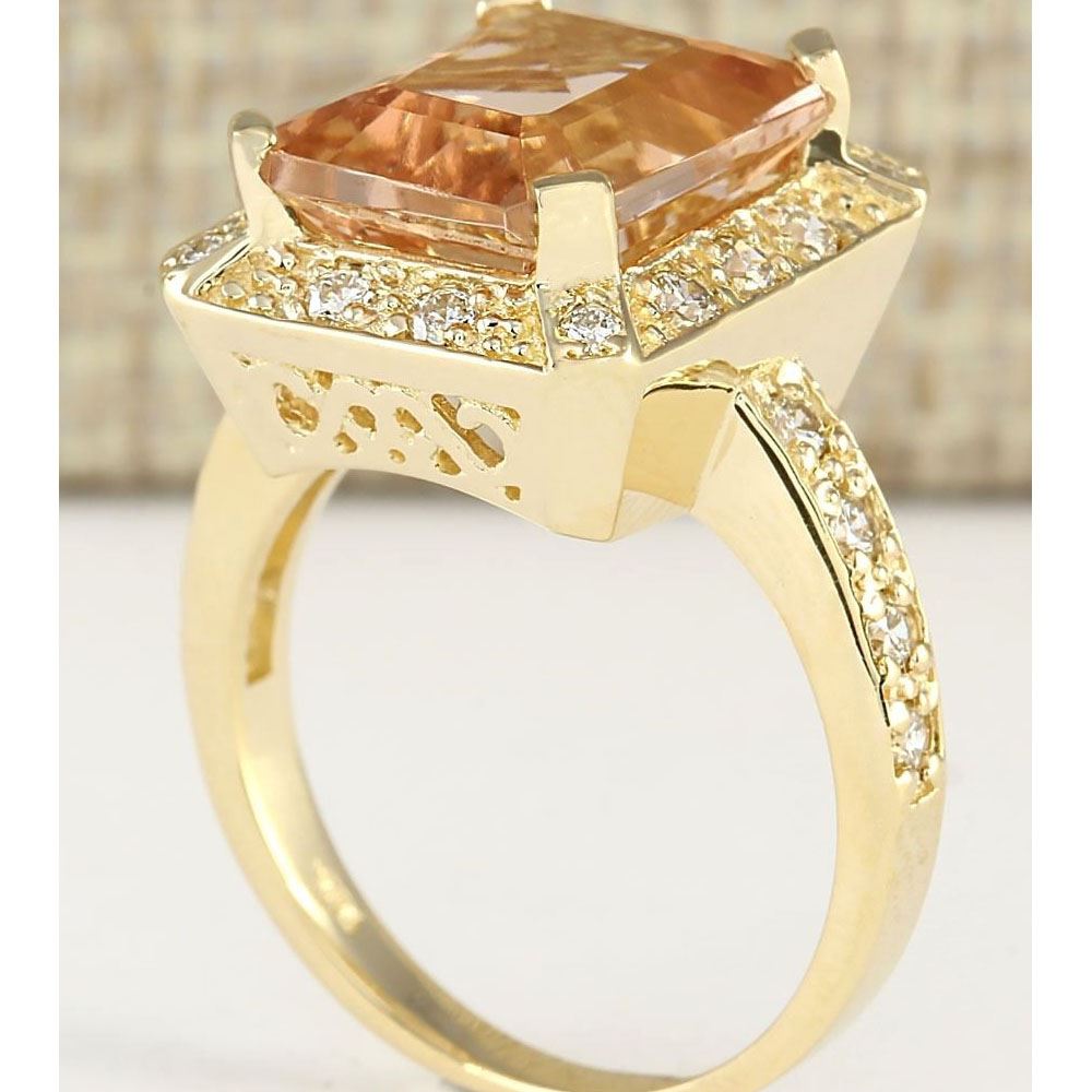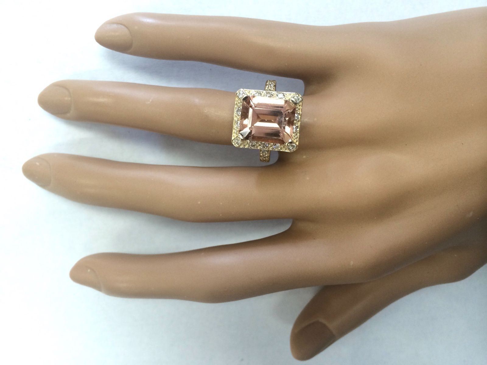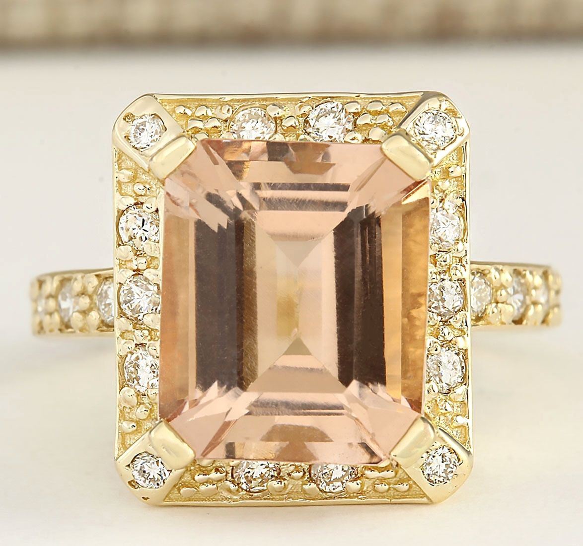 6.03 CTW Natural Morganite And Diamond Ring In 18K Solid Yellow Gold