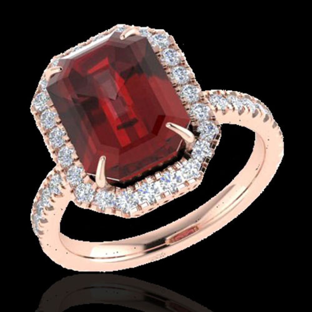 REF-40G6W - SKU: 21427 ---- 6.03 ctw Garnet & Micro Pave VS/SI Diamond Ring 14k Rose Gold