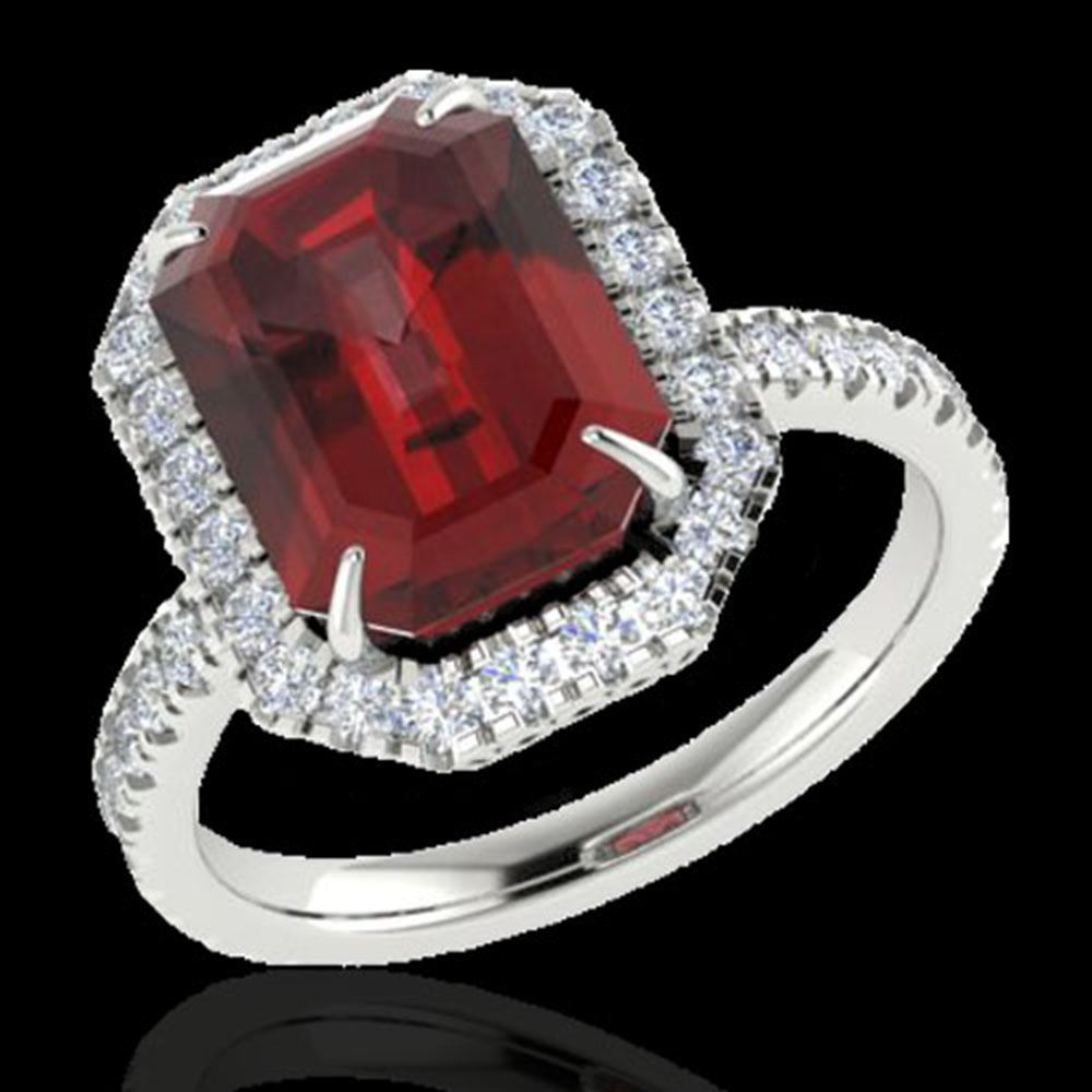 REF-48G3W - SKU: 21428 ---- 6.03 ctw Garnet & Micro Pave VS/SI Diamond Ring 18k White Gold