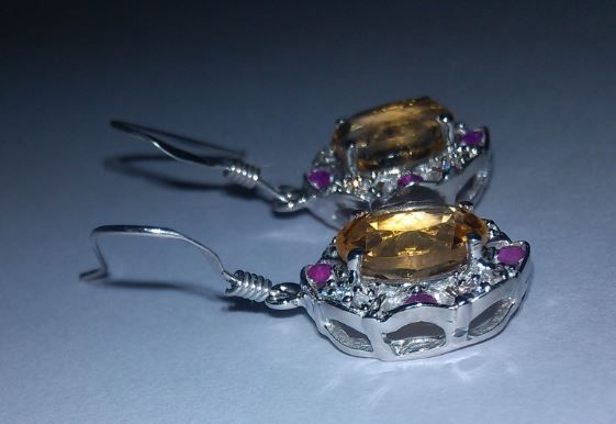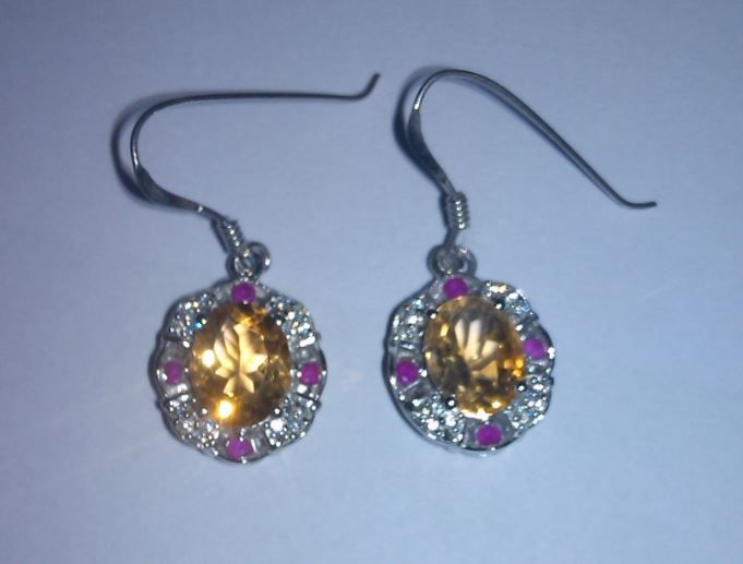 6.040g Earring of Citrine, Ruby and CZ Sterling 925 Silver