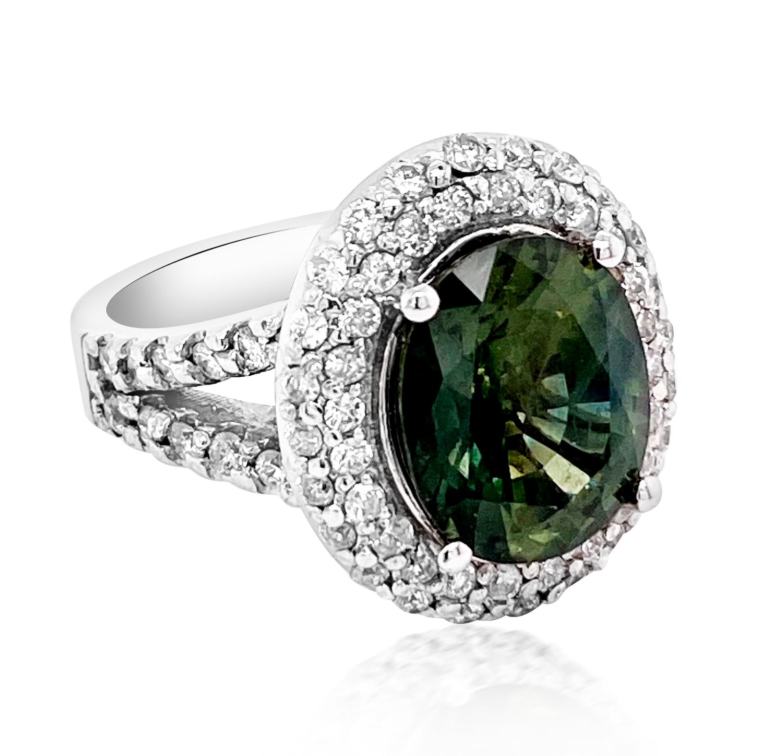 14K W/G NATURAL CEYLON GREEN SAPPHIRE RING :9.11GM /NATURAL SAPPHIRE /DIA :1.20CT/NATURAL CEYLON GREEN SAPPHIRE :6.04CT/#GVR1370