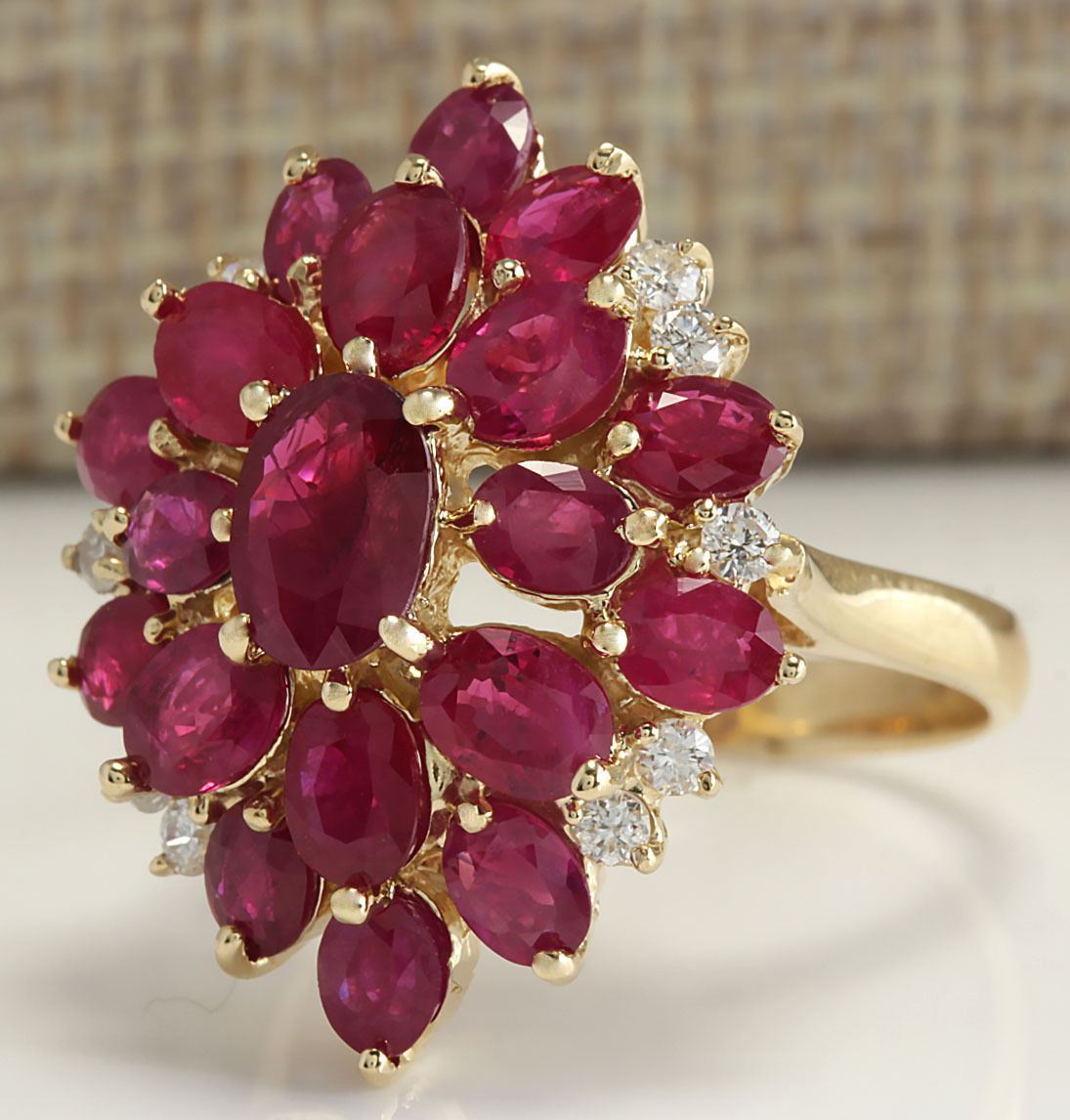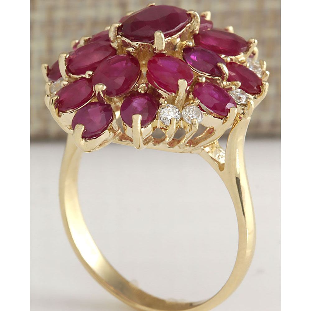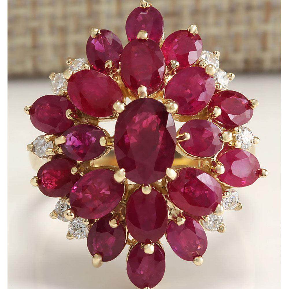 6.04Tw Natural Red Ruby And Diamond Ring 14K Solid Yellow Gold