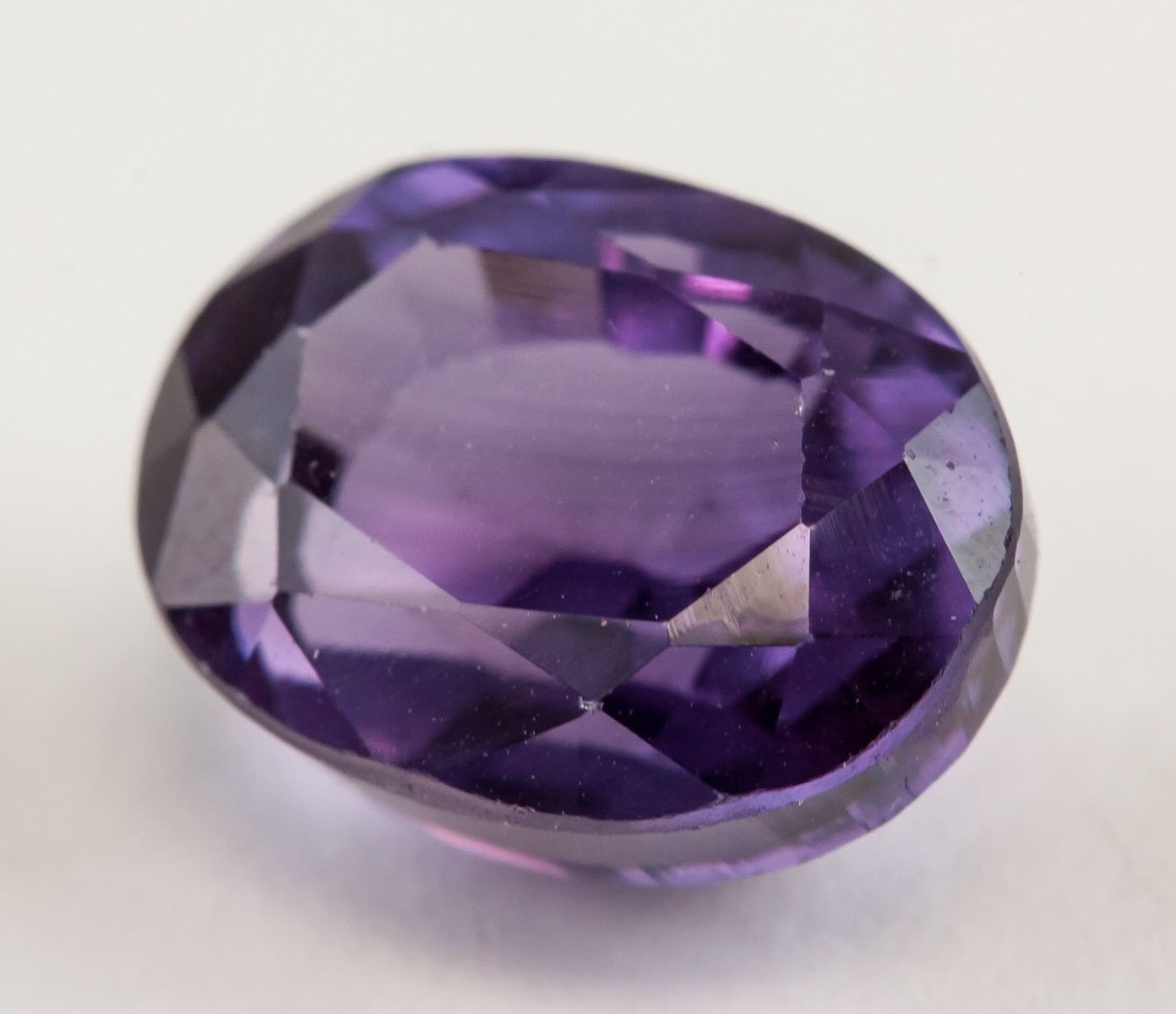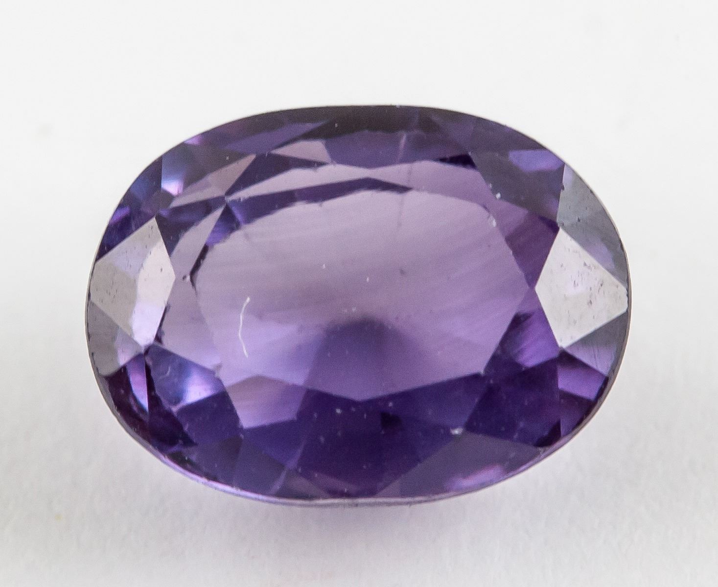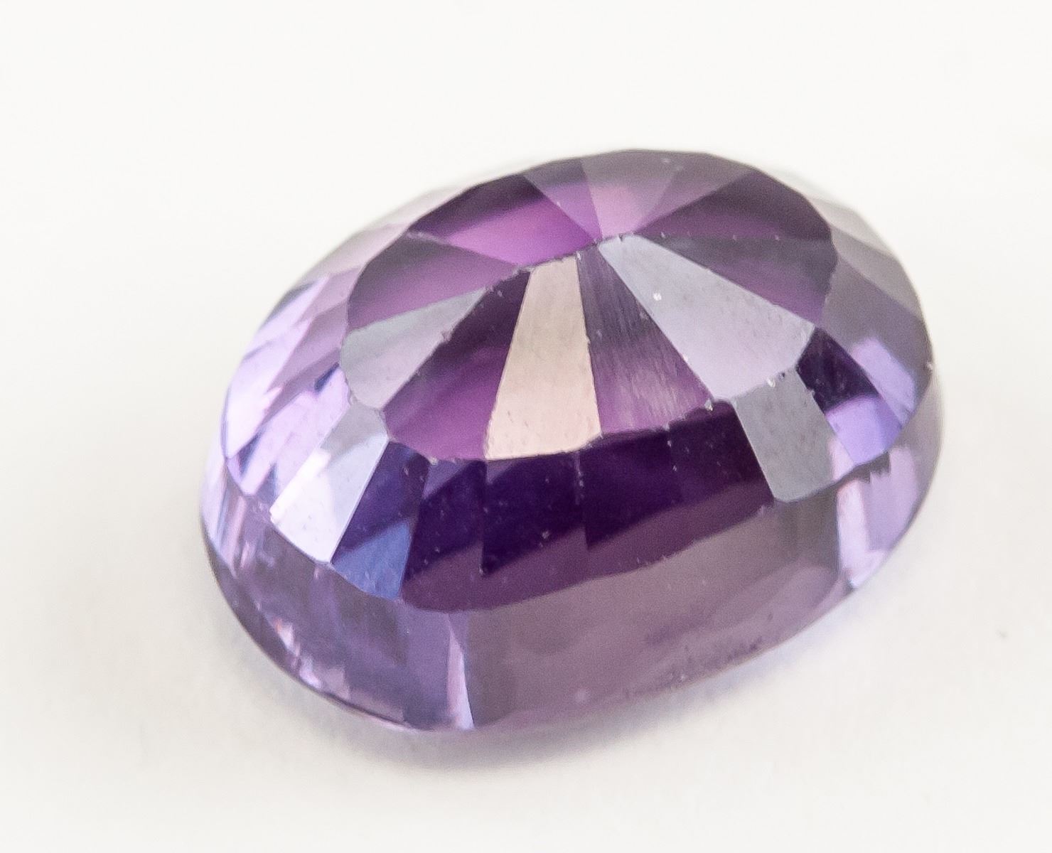 One (1) 6.05 Ct oval cut purple sapphire. 10.84 x 8.22 x 6.82 mm