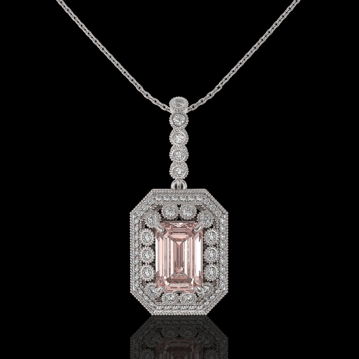 REF-272K8Y - SKU: 43457 ---- 6.05 ctw Morganite & Diamond Victorian Necklace 14K White Gold