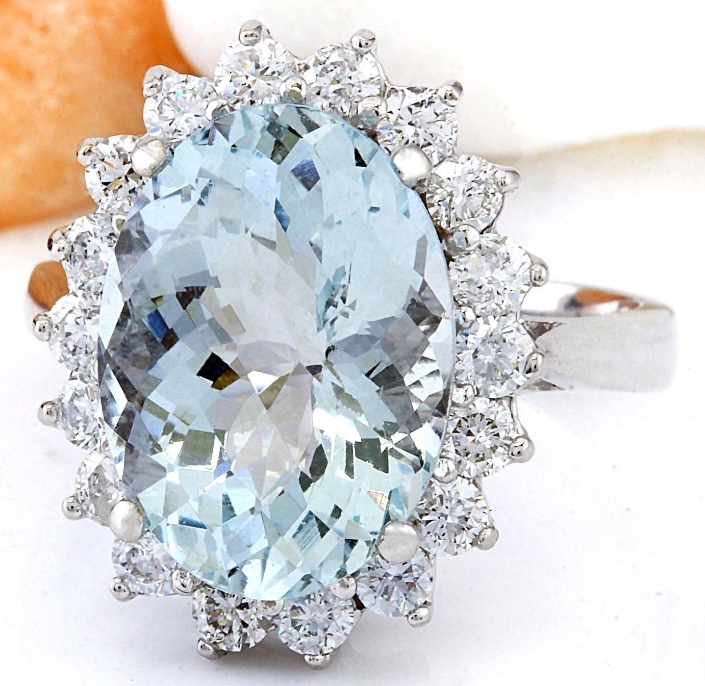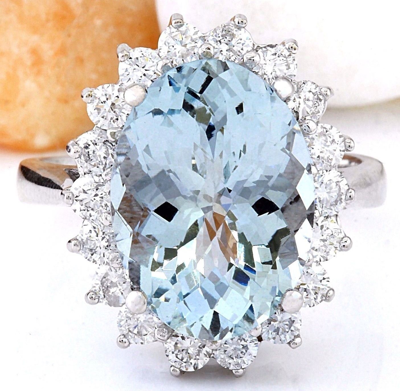 6.06 CTW Natural Aquamarine 14K Solid White Gold Diamond Ring