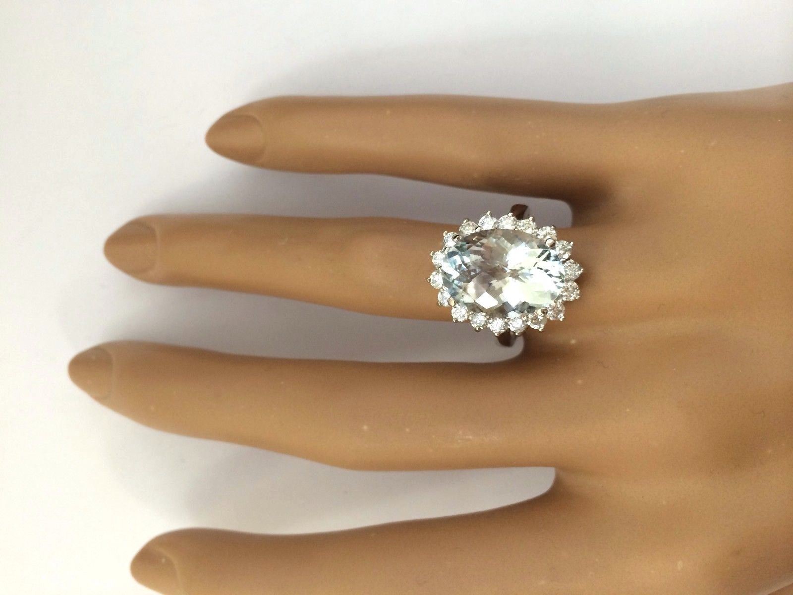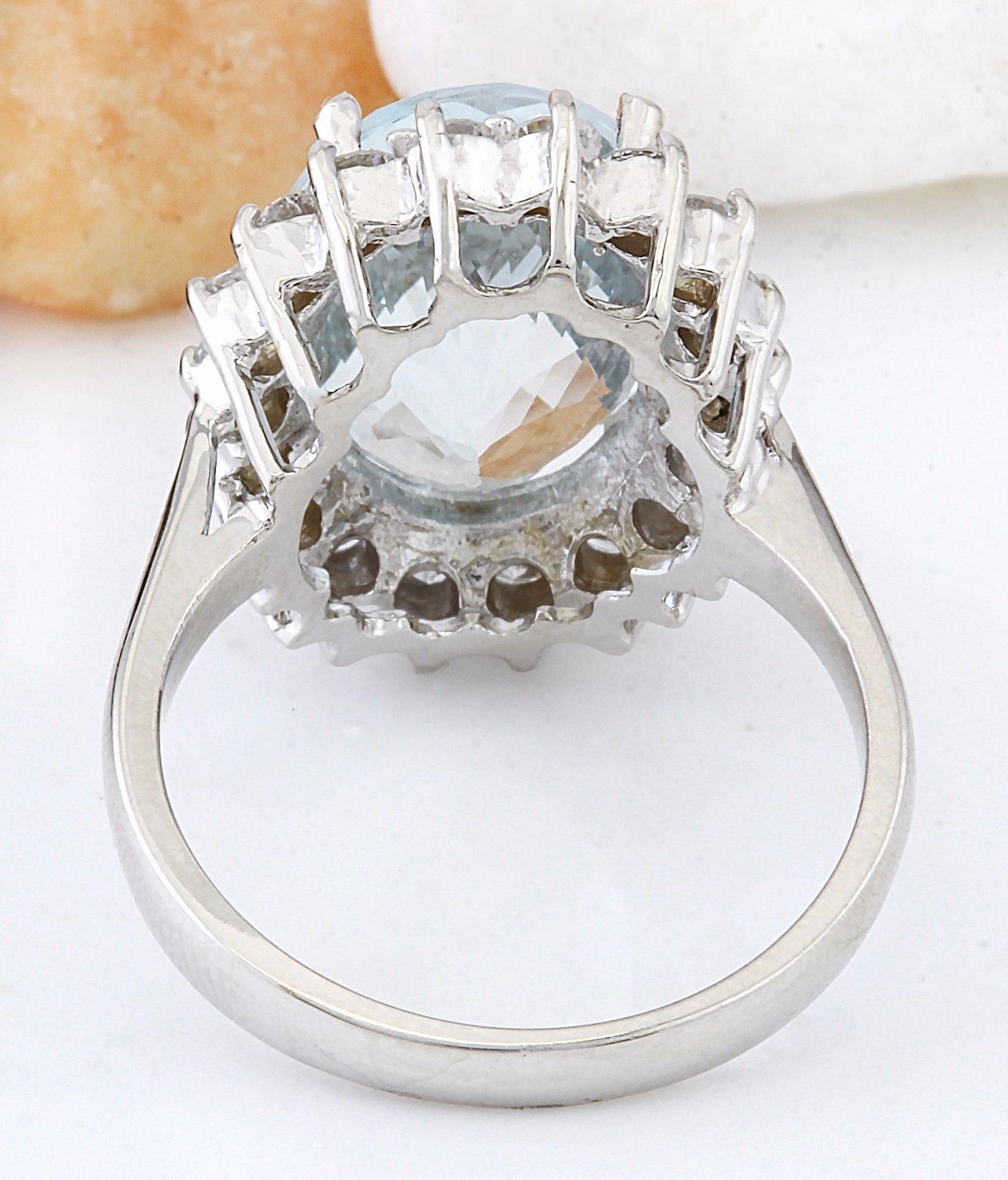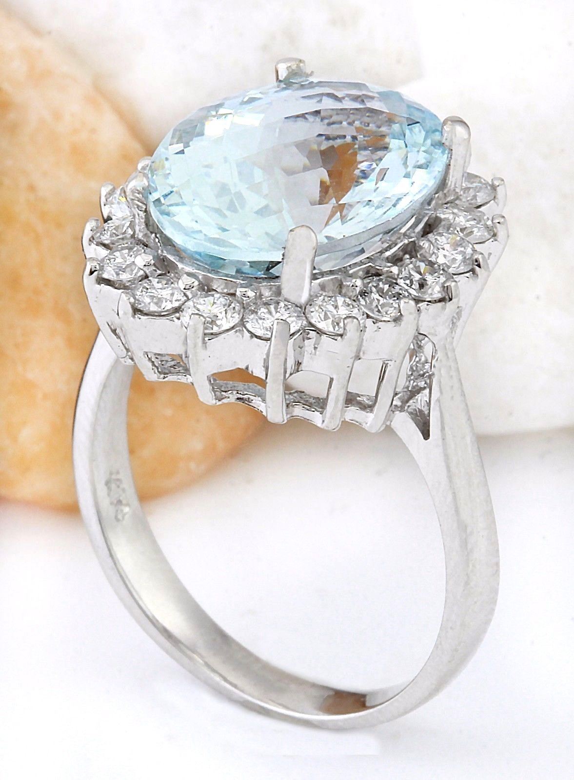 6.06 Carat Natural Aquamarine 14K Solid White Gold Diamond Ring