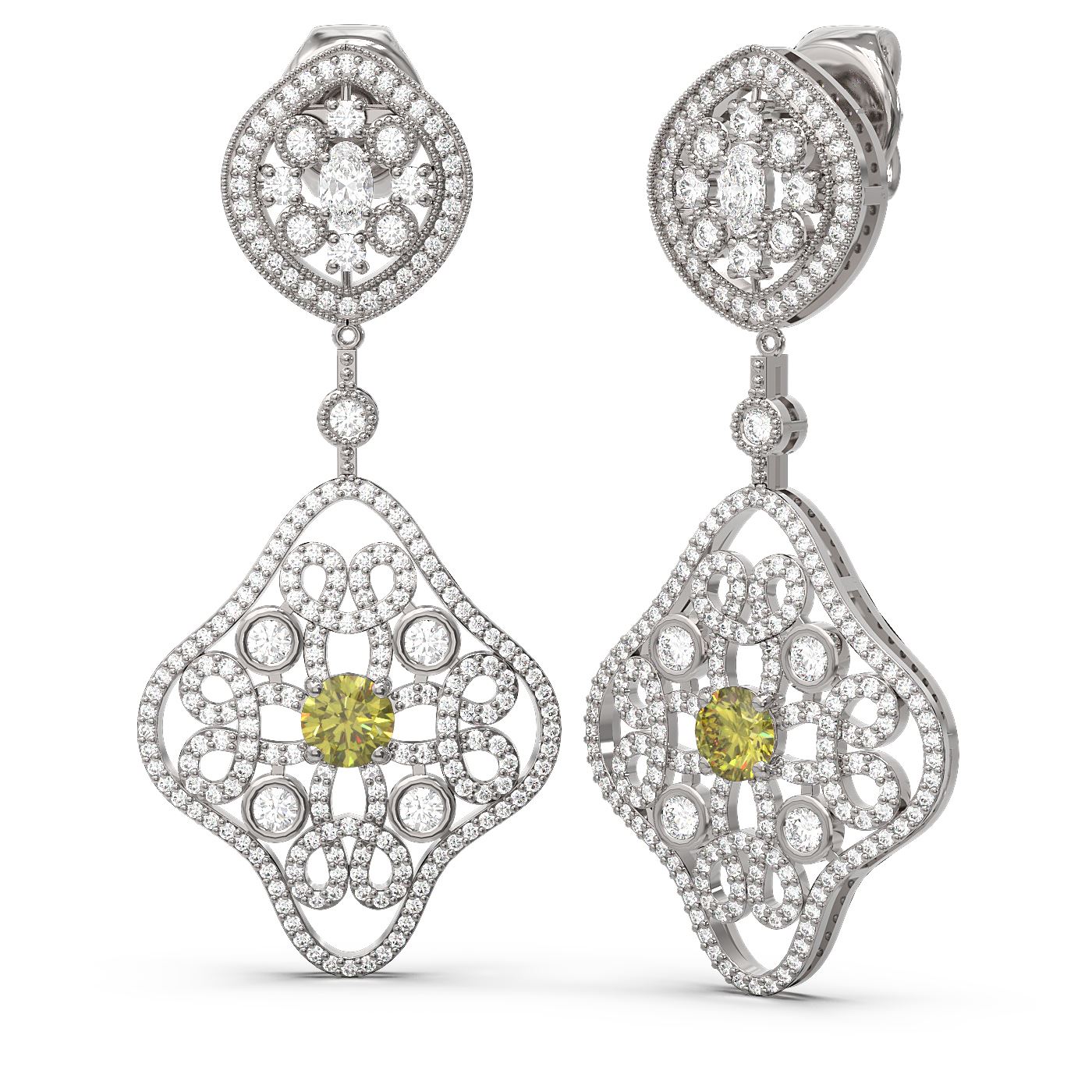 SKU: 57554 ---- 6.06 ctw Fancy Yellow Diamond Earrings 18K White Gold