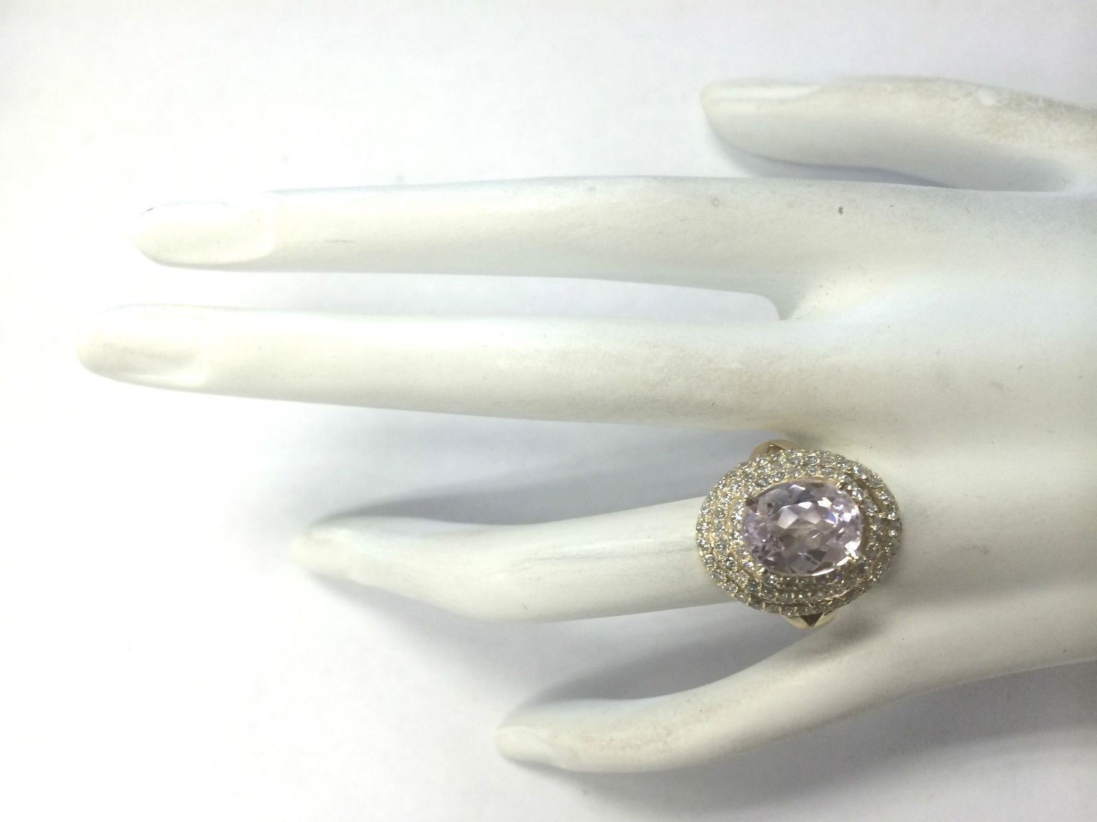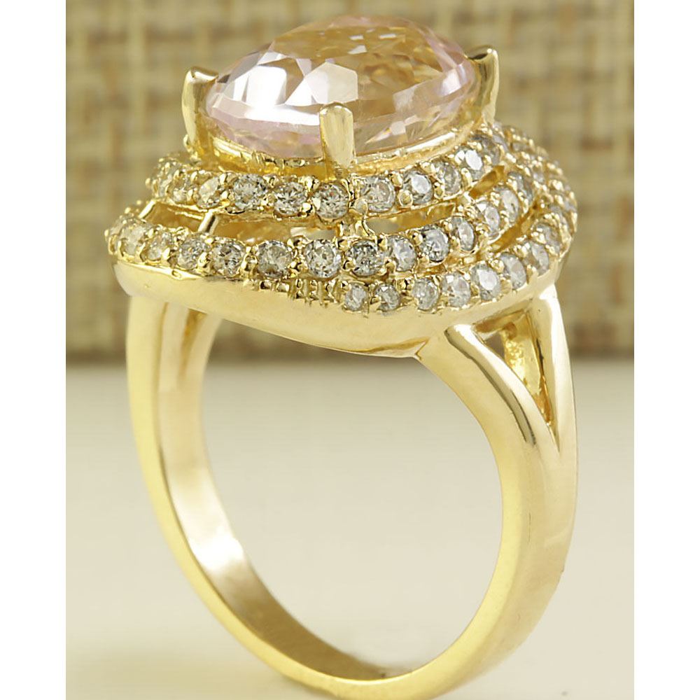 6.07 CTW Natural Peach Morganite And Diamond Ring In 14K Solid Yellow Gold