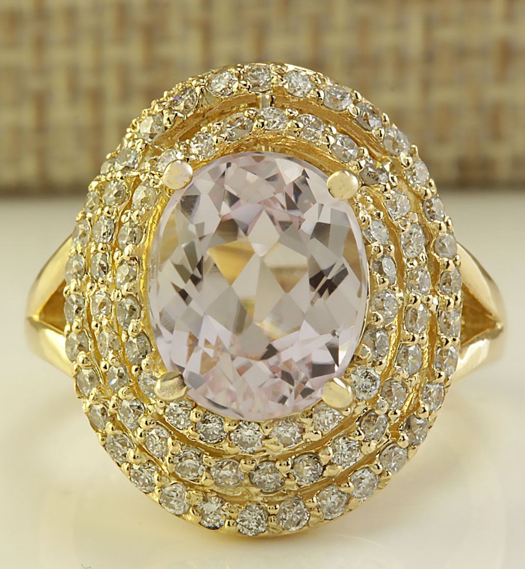 6.07 CTW Natural Peach Morganite And Diamond Ring In 14K Solid Yellow Gold