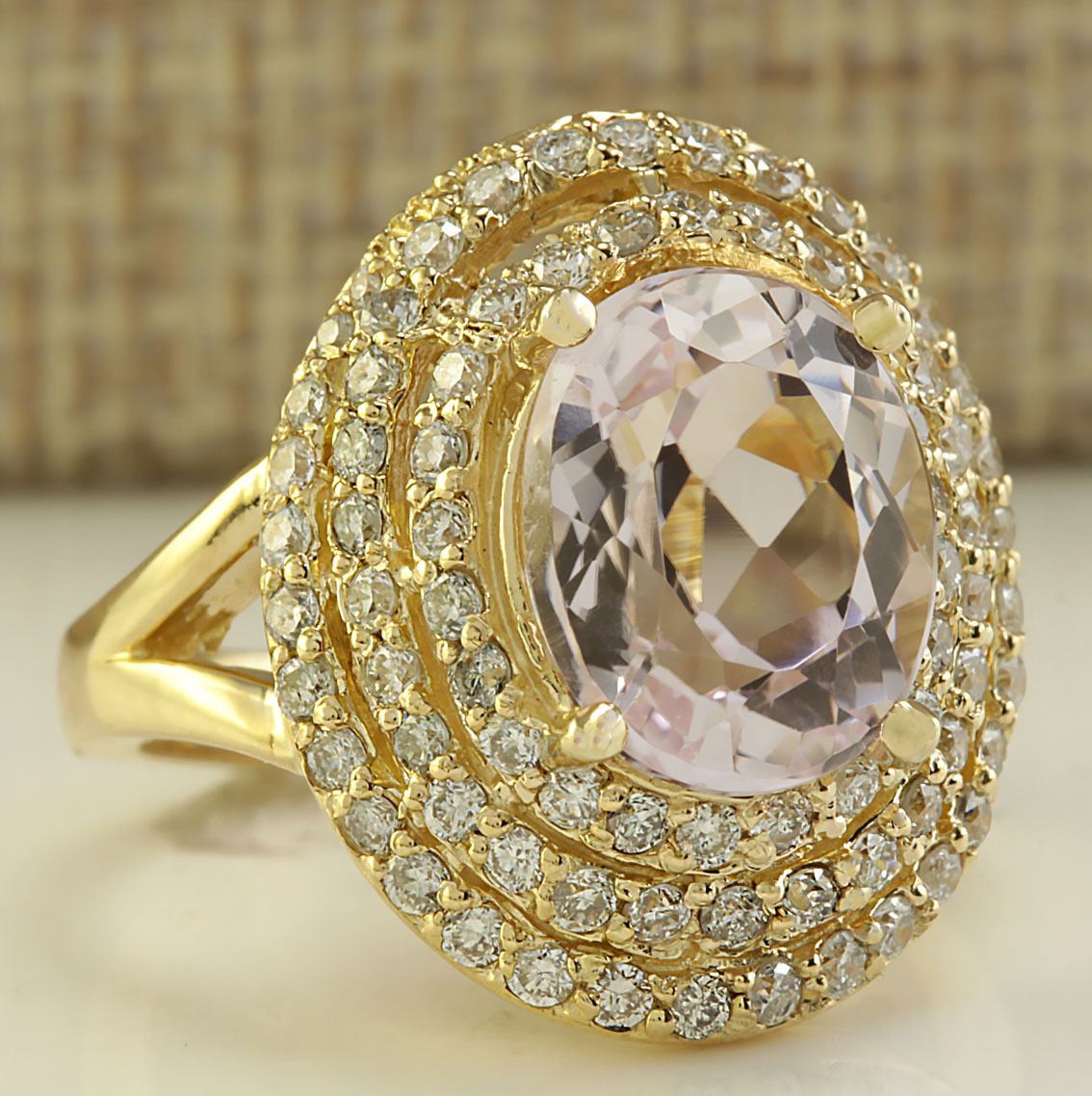 6.07 CTW Natural Peach Morganite And Diamond Ring In 14K Solid Yellow Gold