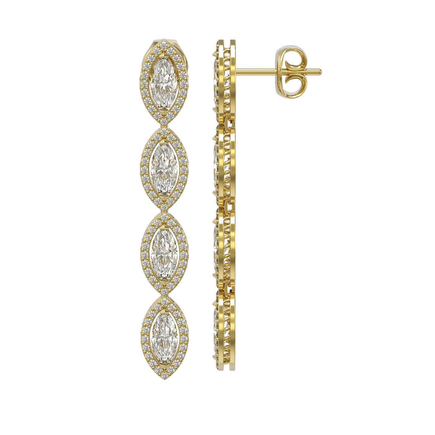 REF-1136A2X -42748 ---- 6.08 CTW Marquise Diamond Designer Earrings 18K Yellow Gold ---- Luxury Designer Brand Earring Appraised at $50,000 Certificate Number US42748 18K Yellow gold, Earring Size is 2 Inches Long, Earring measuring approx. 7 x 47 mm Long, weighing in total approx. 8.5 grams. Made in the USA and is stamped 18K, Main stone 4.8 carat total weight containing 8 pieces of I-J color with VS/SI quality Marquise shape cut Diamond , Stone #2 1.28 carat total weight containing 160 pieces of G-H color with VS/SI quality Round shape cut Diamond