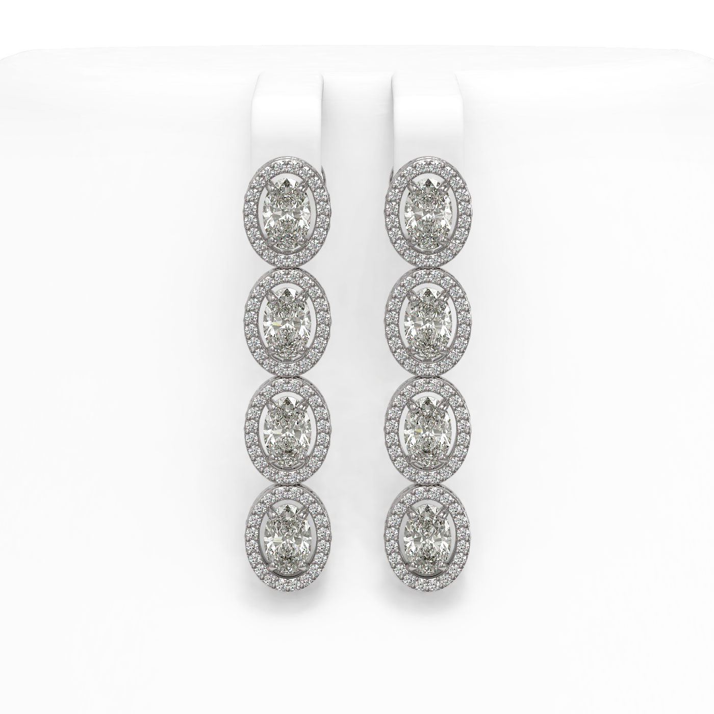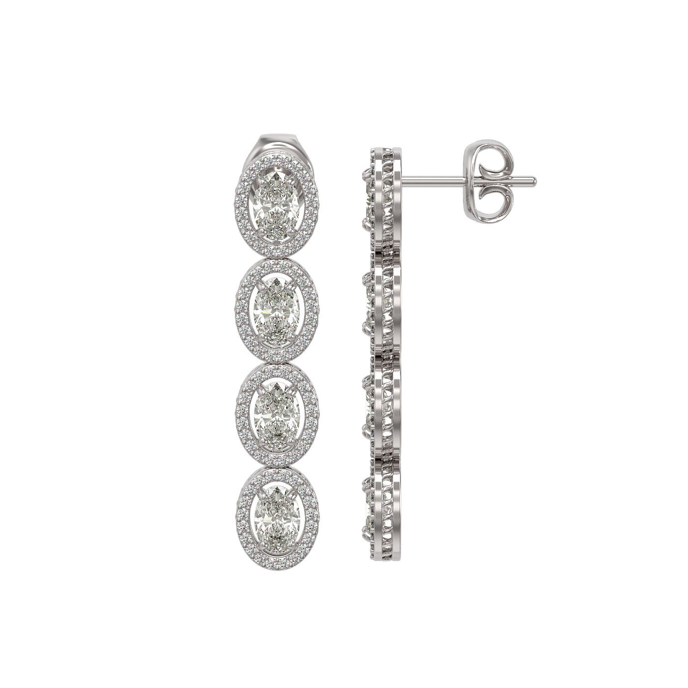 REF-1132A4X -42710 ---- 6.08 CTW Oval Diamond Designer Earrings 18K White Gold ---- Luxury Designer Brand Earring Appraised at $49,800 Certificate Number US42710 18K White gold, Earring Size is 1 1/2 Inches Long, Earring measuring approx. 7 x 36 mm Long, weighing in total approx. 8 grams. Made in the USA and is stamped 18K, Main stone 4.8 carat total weight containing 8 pieces of I-J color with VS/SI quality Oval shape cut Diamond , Stone #2 1.28 carat total weight containing 160 pieces of G-H color with VS/SI quality Round shape cut Diamond
