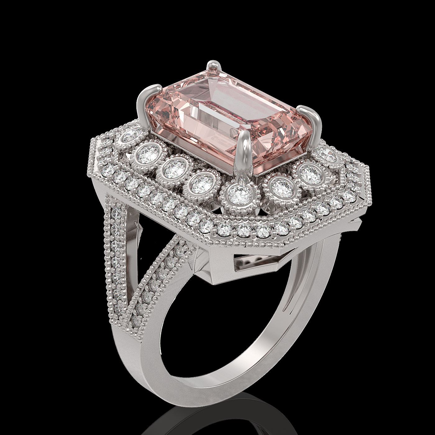 REF-226G4W - SKU: 43385 ---- 6.08 ctw Certified Morganite & Diamond Victorian Ring 14K White Gold